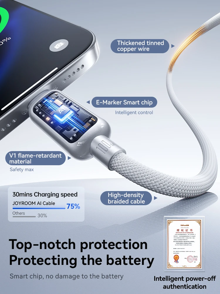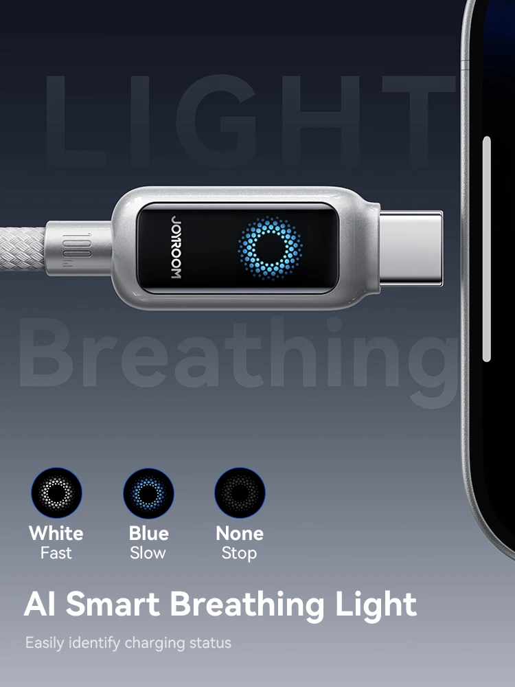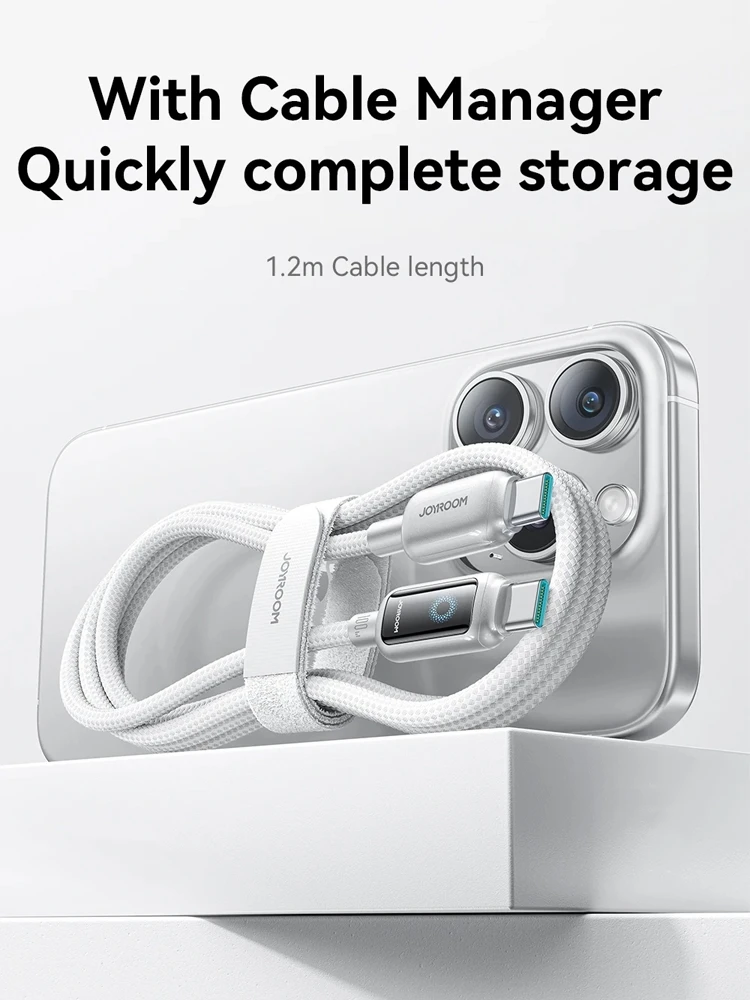 Joyroom 100W USB C Cable Automatic Power Off Fast Charge Type C Cable For iPhone 16 15 Pro Max Xiaomi Sumsang Huawei