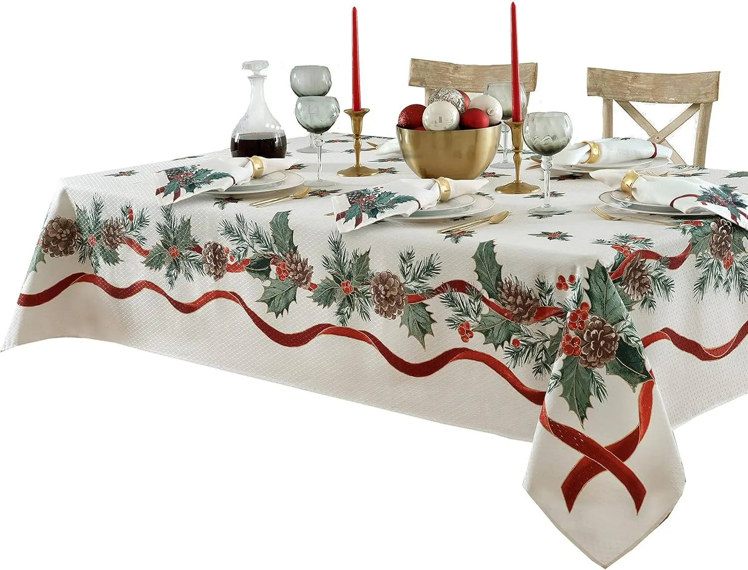 Christmas Holly Pine Needle Waterproof Tablecloth Table Decor Winter Xmas Holiday Kitchen Dining Tablecloth Christmas Decoration