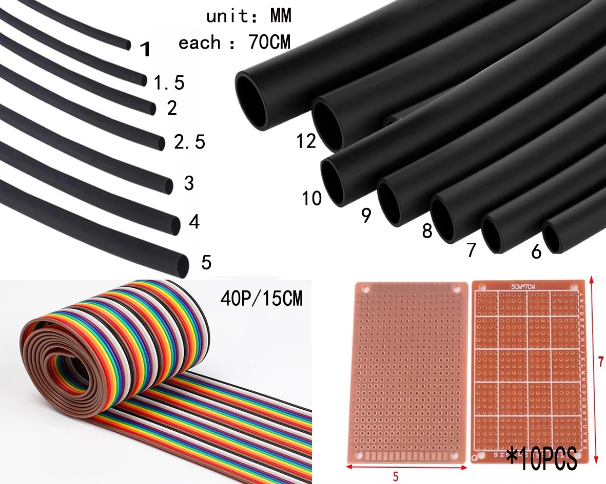 Heat Shrink Tube Black Dia 25.4 Thermal Cable Sleeve Insulated 10pcs PCB Universal Board Single Side Yellow 5*7CM 15CM 40P Wire