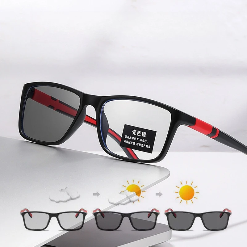 Photochromic Anti Blue Light Outdoor Sports Cycling Ultra Light High-definition Color Changing Myopia Glasses 0 -0.5 -0.75 -1.25