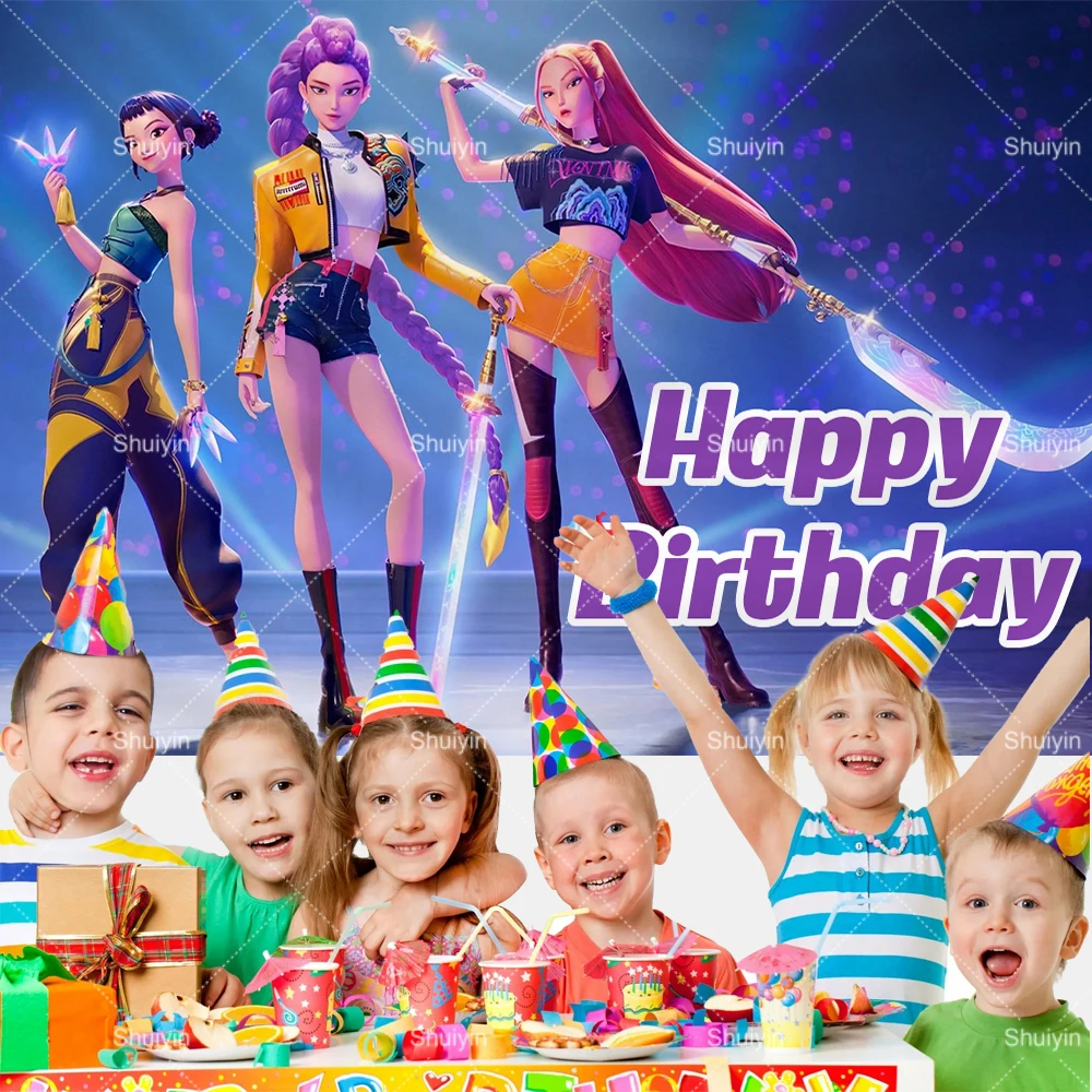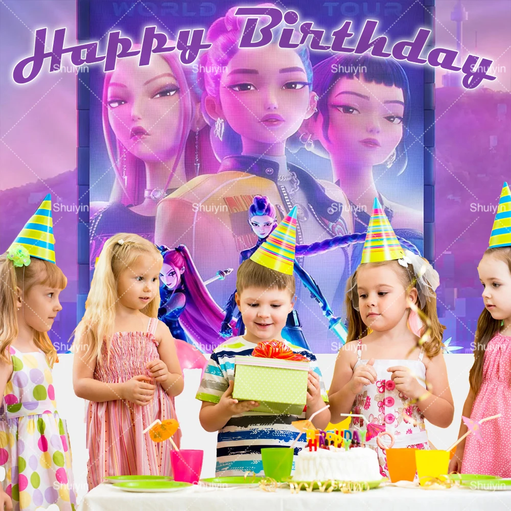 Hot KPop Girl Demon Hunters Backdrop Children's Birthday Party Decorations Baby Shower Banner Background Photo Booth Props