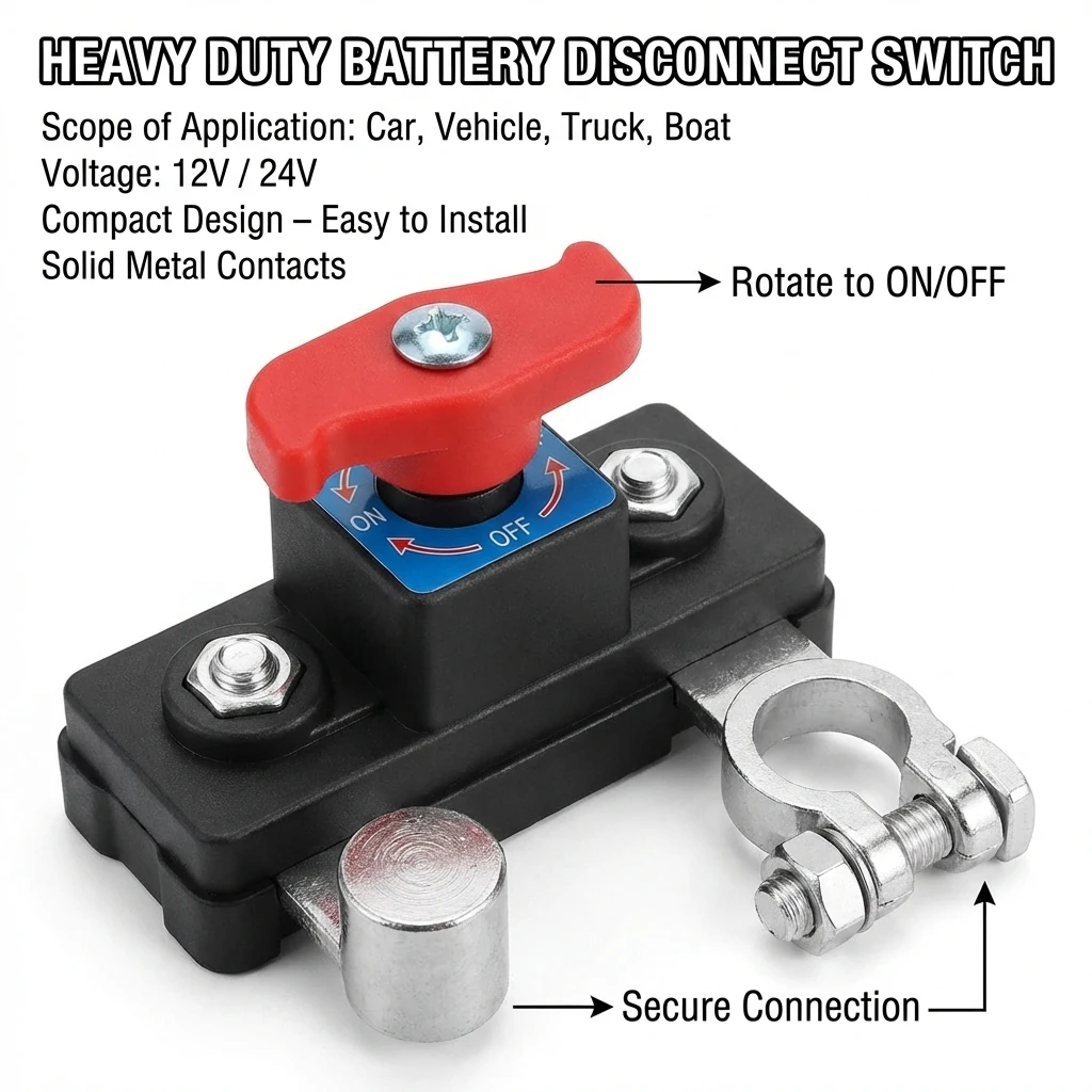 Dual Voltage 12V 24V Battery Master Cut off Switch Zinc Alloy Negative Pole Disconnect Tool-Free Knob PCB Design Auto Accessory