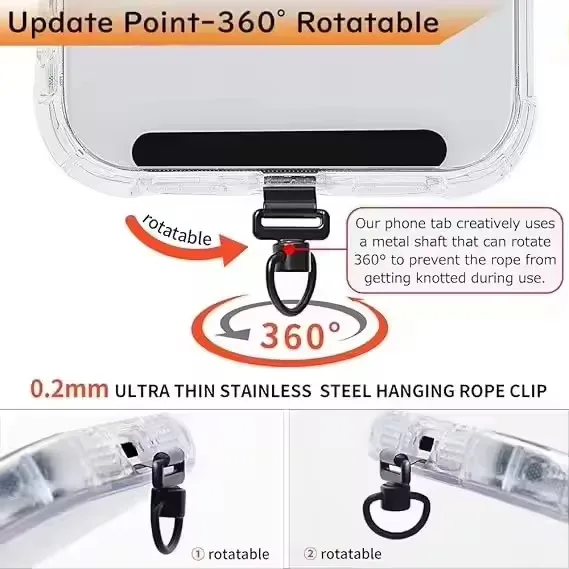 360° Rotatable Phone Lanyard Clip Patch Ultra-thin Stainless Steel Phone Case Hanging Rope Card Anti-lost Strap Fixed Gasket
