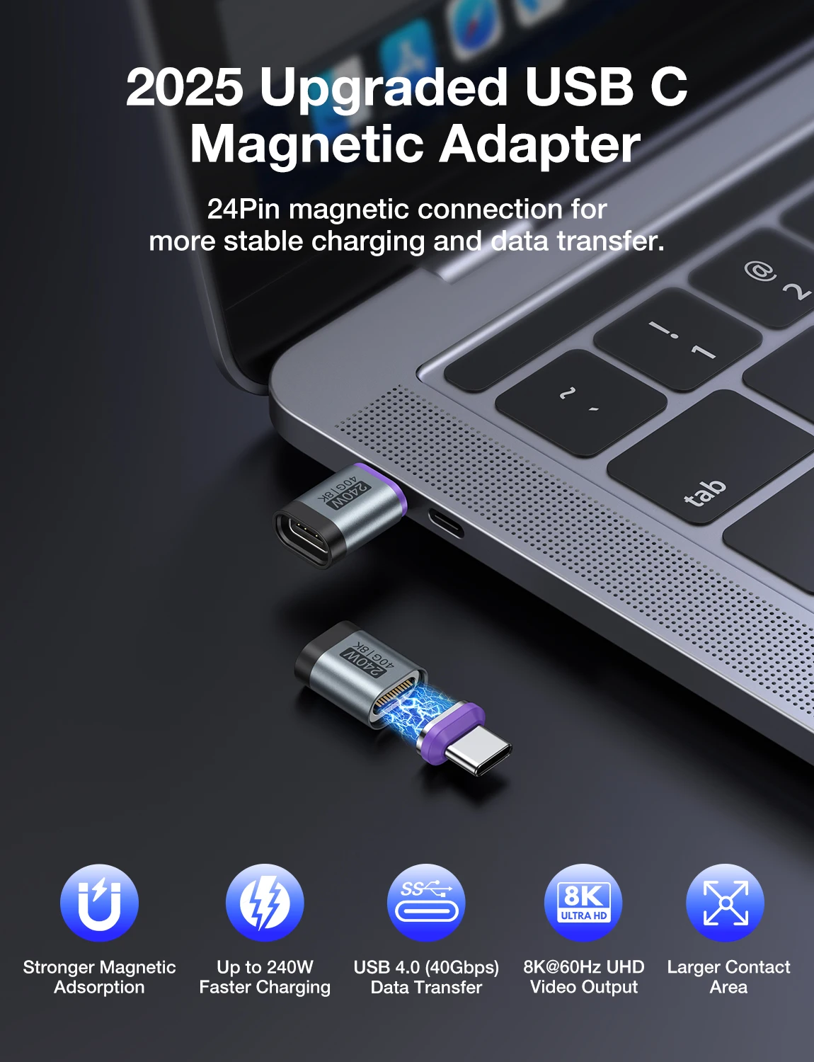 AUFU PD240W Magnetic USB C Adapter For Iphone USB4 OTG Connector 40Gbps 8K60Hz Type C Female Converter For Thunderbolt 4 Macbook