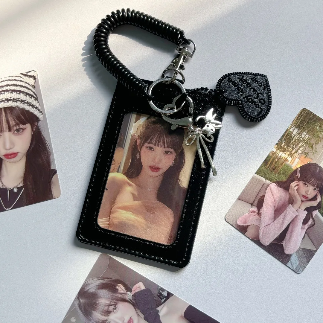New Pu Black card holder album storage Key ring pendant Korean Kpop Card Sleeve with Protective Film Idol Photo Game Card Cover