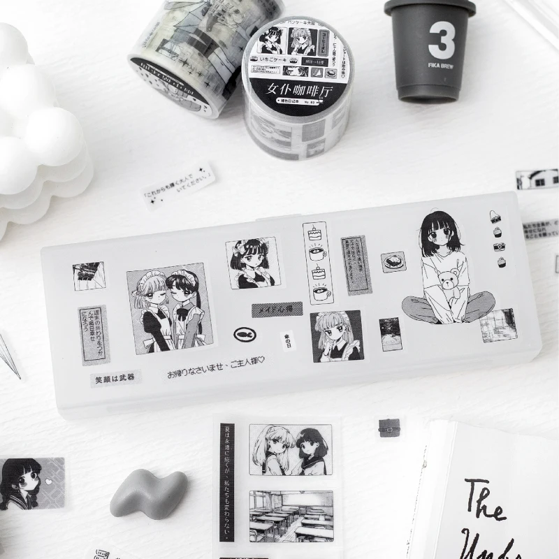2m/roll Kawaii Japanese black and white manga style PET die-cut tape DIY decoration scrapbook diary album stationery sticker