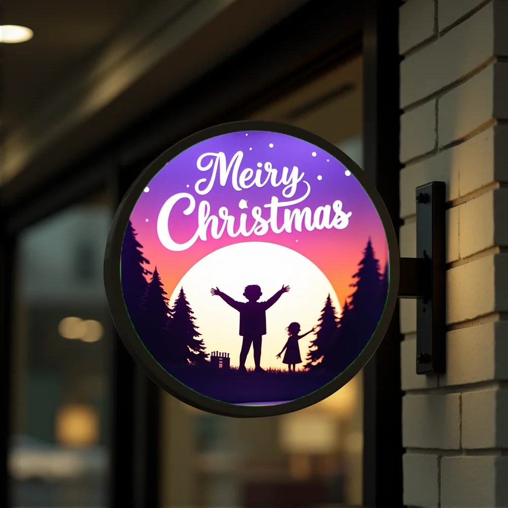 Custom Christmas Light Box for Round Acrylic LED Storefront Waterproof Double Sided Outdoor Business Signage Wall Mounted