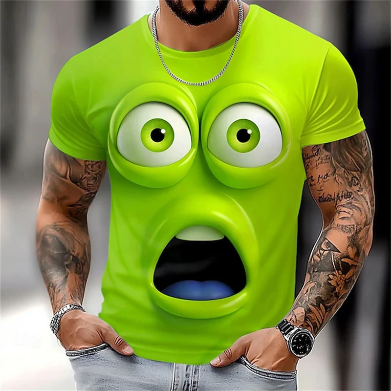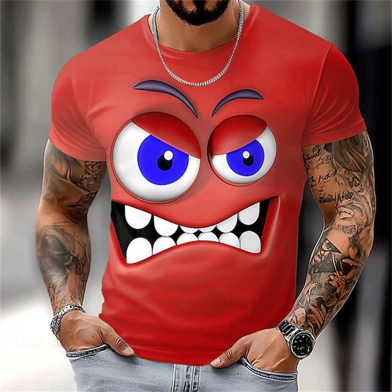 Summer New 3D Printed Funny Face T-shirt Fashionable Men's Holiday Short-sleeved Casual O-neck Loose T-shirt Streetwear