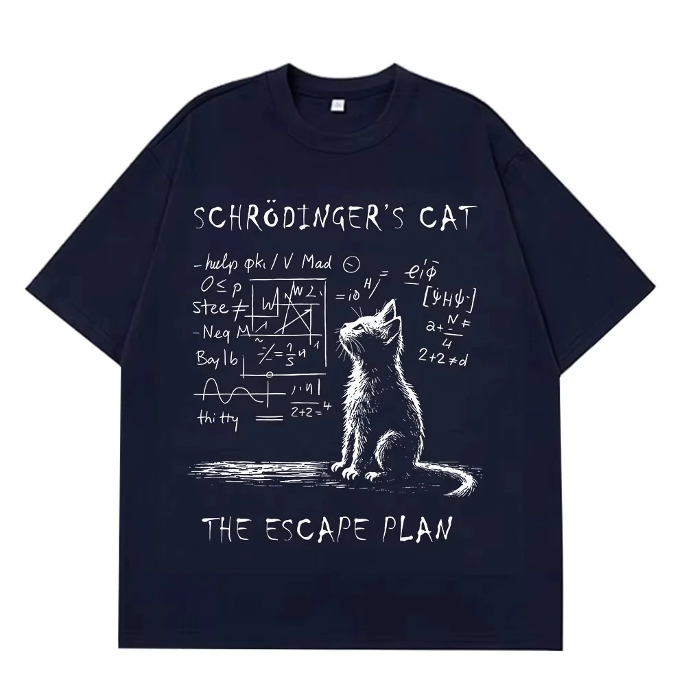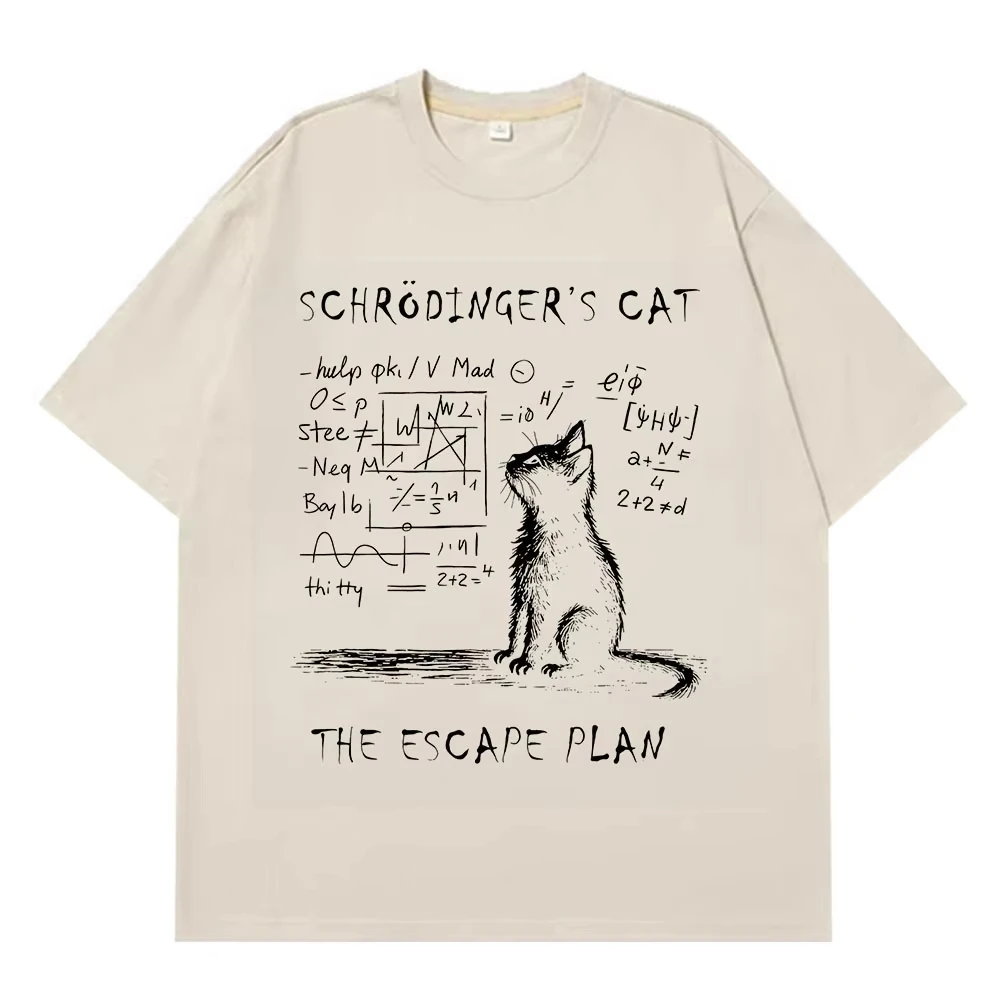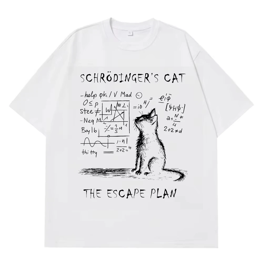 Schrodinger Cat Physics Quantum Mechanics Creative Print Summer Short-sleeved Cotton T Shirt Men Women Streetwear Loose T-shirts