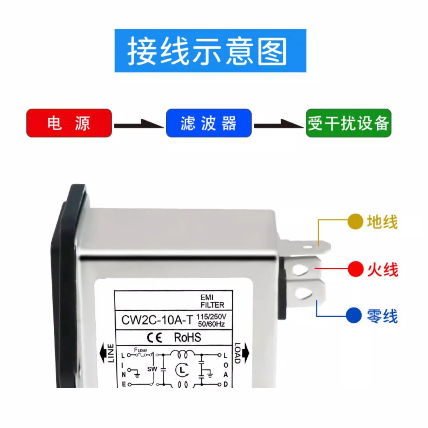 Single-phase EMI filter/IEC T-Socket filter CW1D-3/6/10A-T 250V Audio power supply filter power purifier Anti-interference