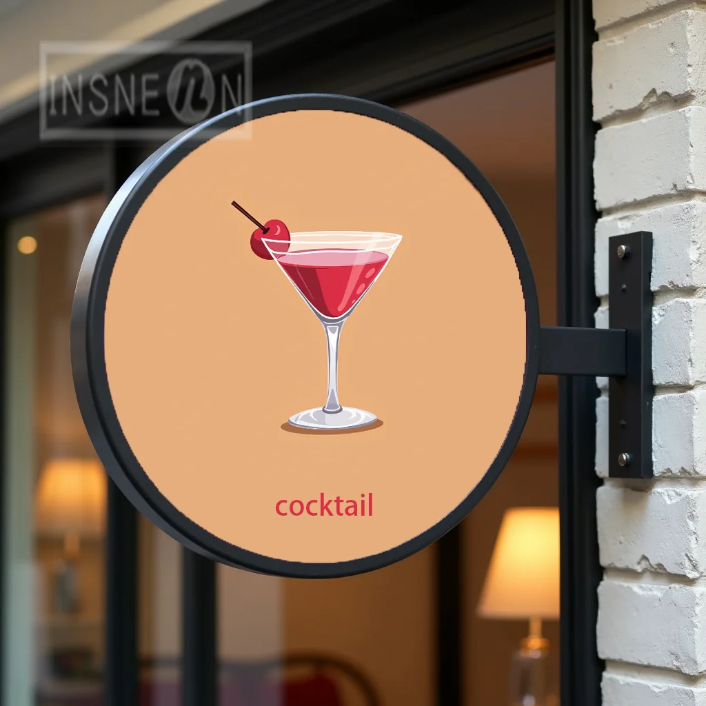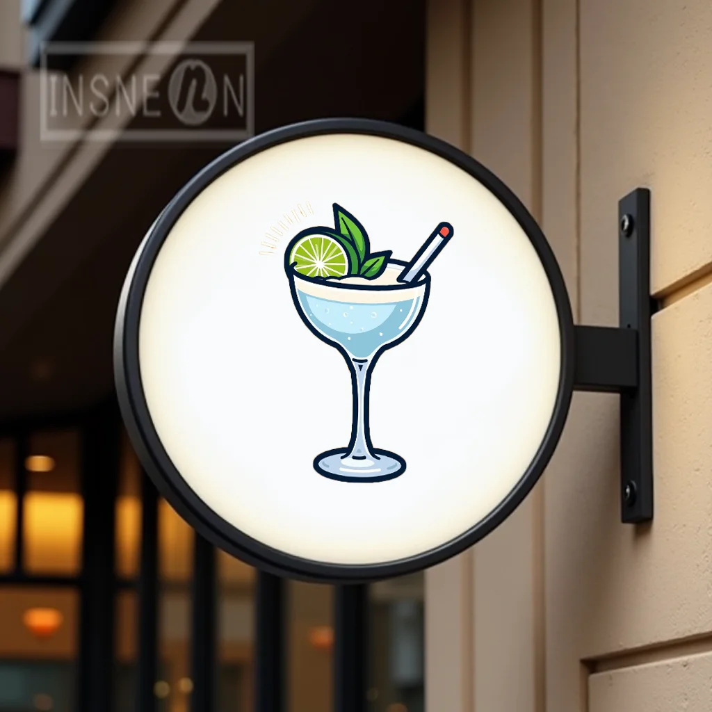 Custom Round Acrylic LED Cocktails Bars Light Box for Storefront Waterproof Double Sided Outdoor Business Signage Wall Mounted
