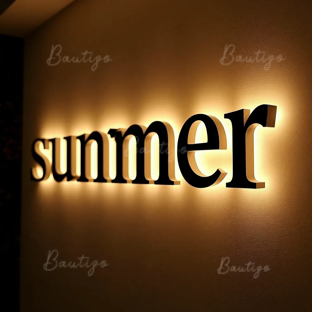 Custom LED Backlit Letters Sign 3D Metal Signage for Business Illuminated Light Up Advertising Storefront Outdoor Waterproof