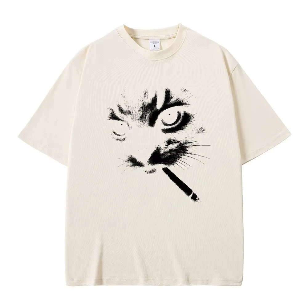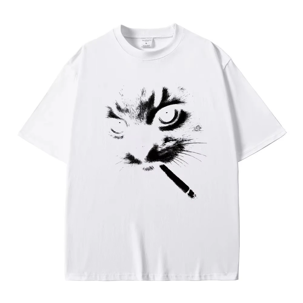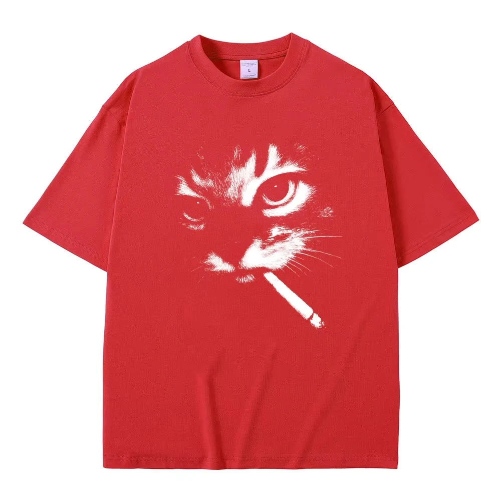Funny Meme Smoking Cat Face Graphic T-shirts Men Women Casual Cotton Vintage T Shirts Men's Oversized T-shirts Cats Lovers Gifts