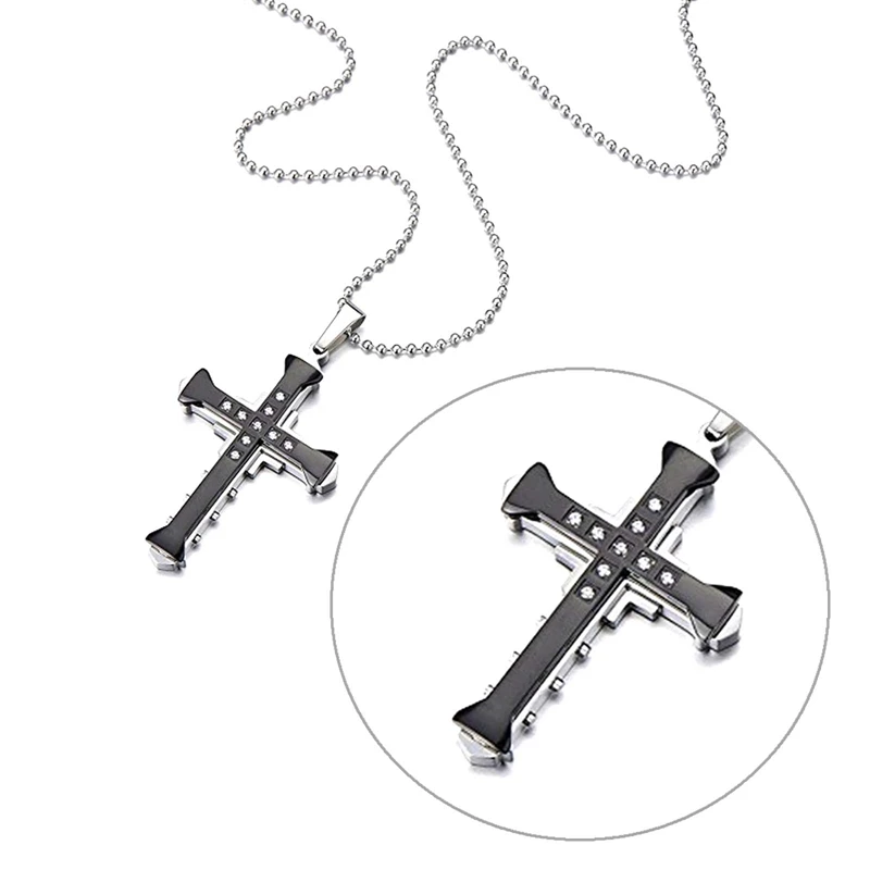 2024 New Male Crystal Cross Jesus Pendant Gold/Black/Blue Color Zirconia Cross Pendant Necklace Stainless Steel Jewelry