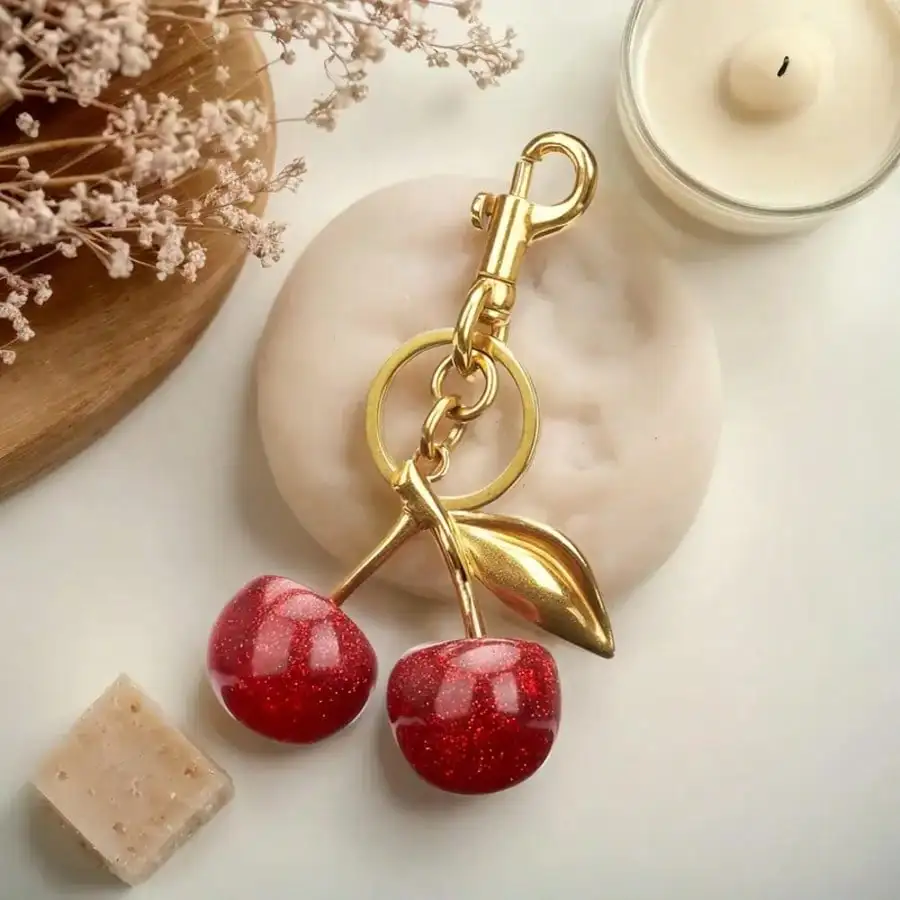 Trendy Red Cherry Pendant Keychain for Women Cute Bag Decorations Multifunctional Jewelry Car Key Accessories Charm Keyring Gift