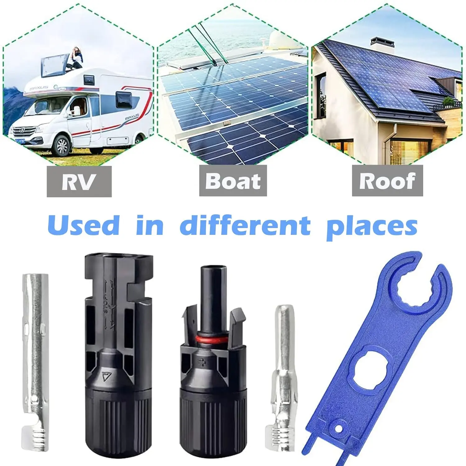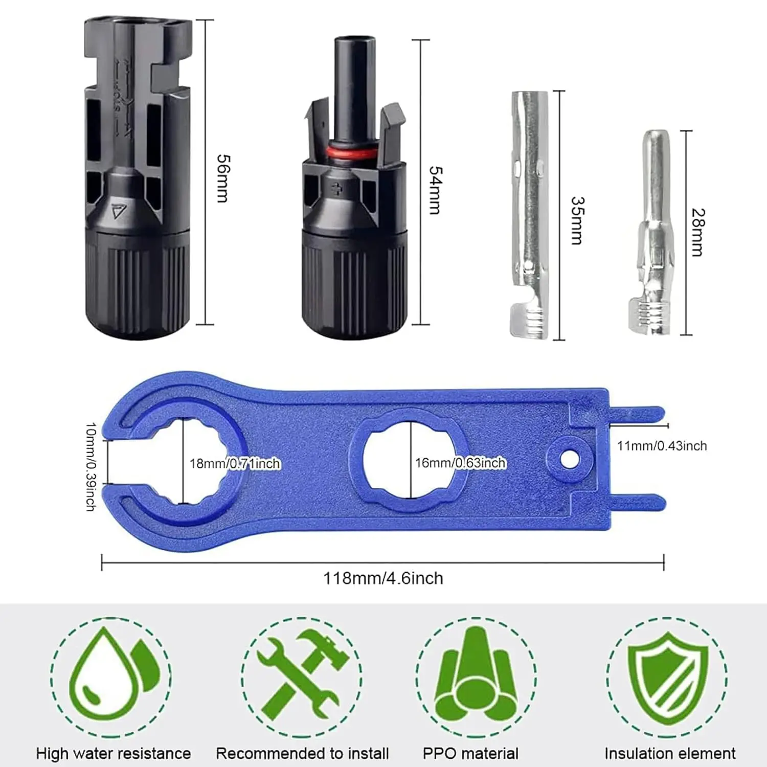 5pairs Solar Panel Connectors IP67 Waterproof Solar Cable Connectors 1000V 30A Male/Female Plug with 2PCS Spanners