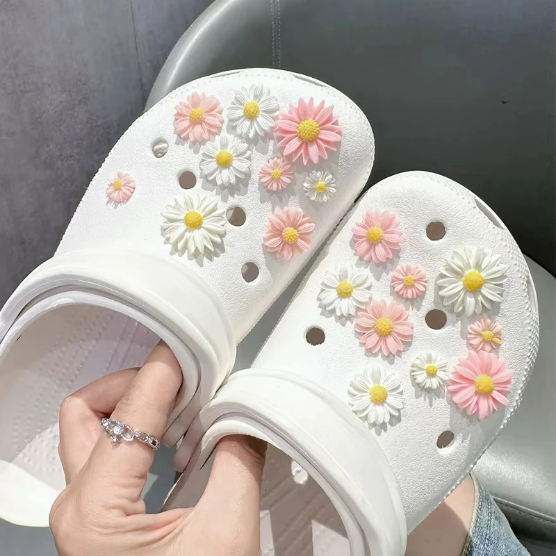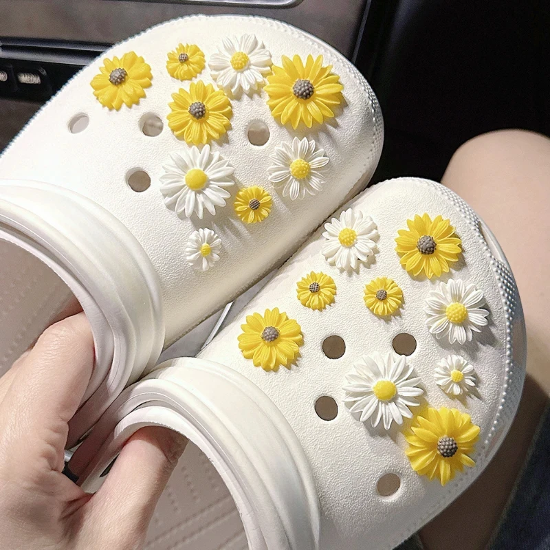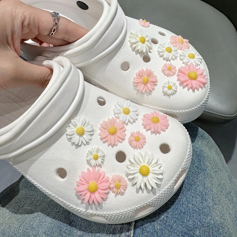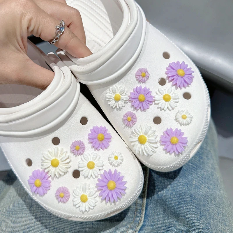 18pcs Cute Fashion Daisy Set Shoe Charms for Clogs Accessories DIY Slide Sandals Garden Shoe Buckles Pins Shoe Decorations Gifts