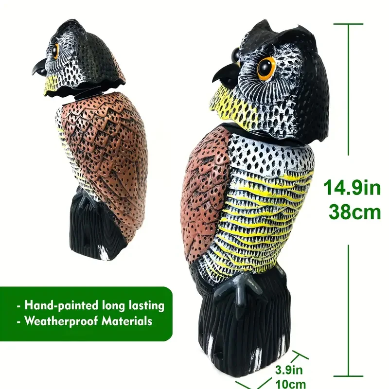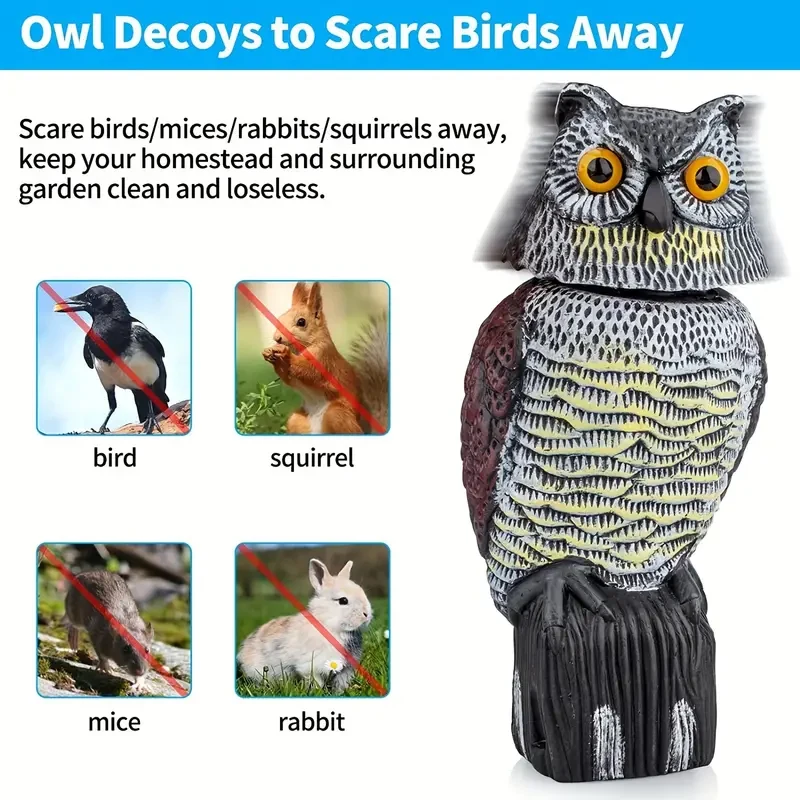 Owl lure with 360° rotating head, insect repellent, bird deterrent, garden protector, scare away birds, squirrels and mice