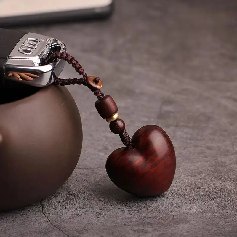 Creative Simple Rosewood Red Love Woman Mobile Phone Chain Hand-woven Solid Wood Car Key Chain Couple Gifts