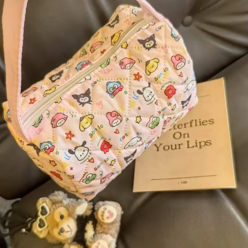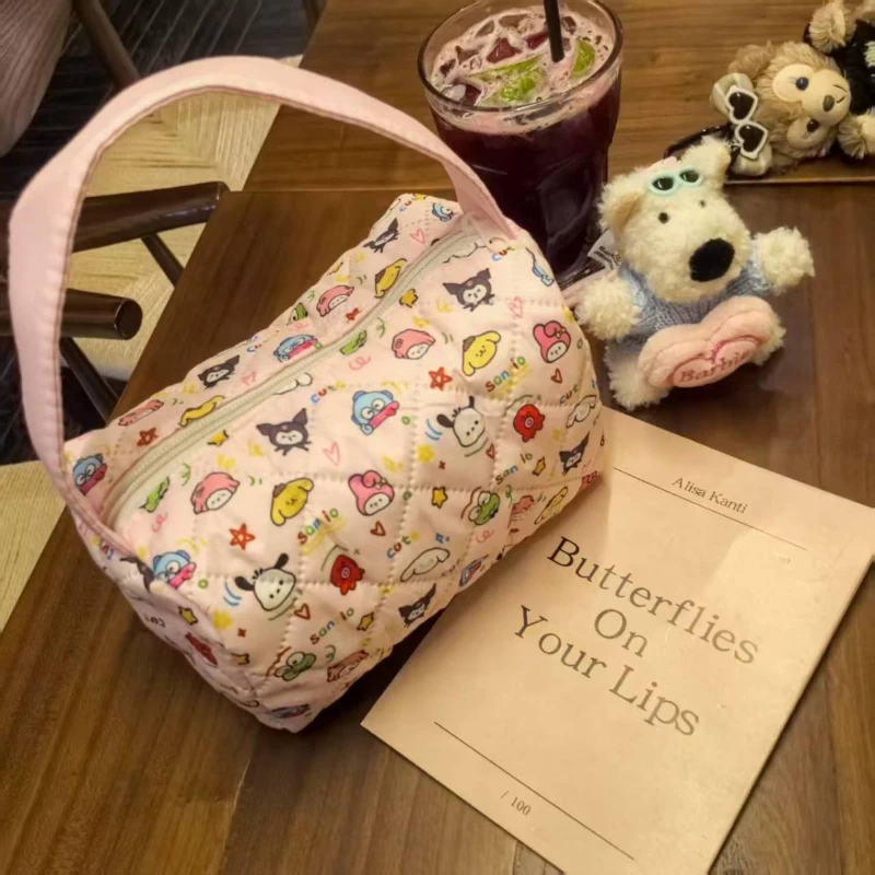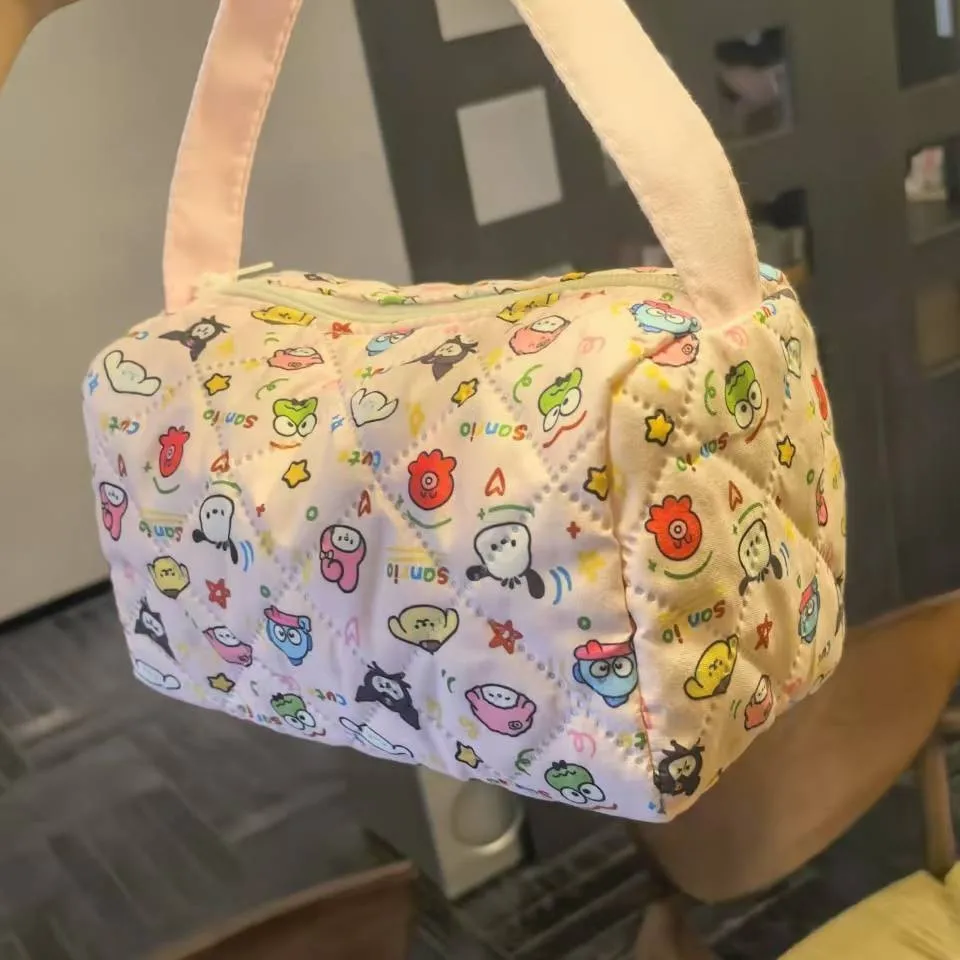 2025 NEWCartoon Plaid Tote Bag - Large Capacity Bubble Cotton Makeup Bag, Commute & Travel Toiletry Organizer