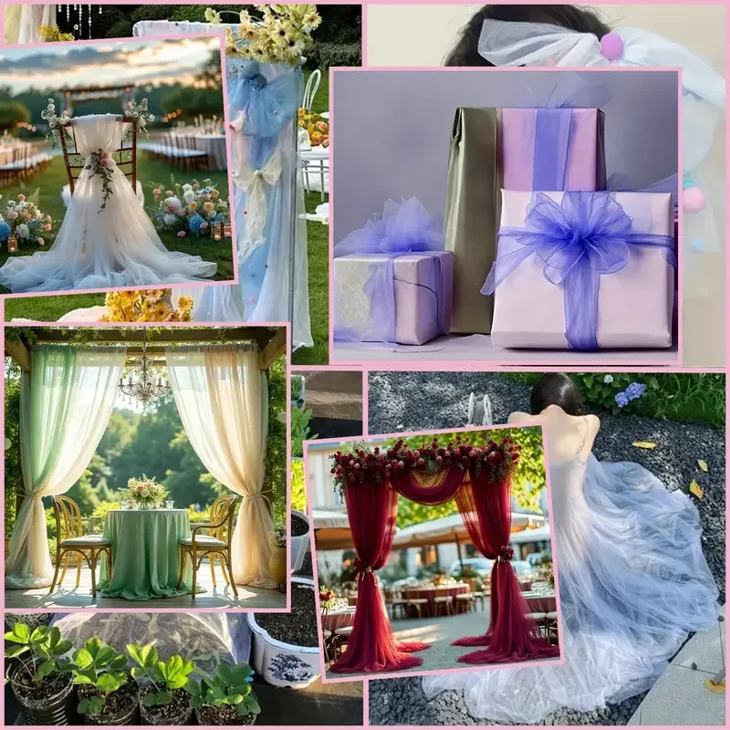Tulle Fabric DIY Decor Wedding Accessorie XMS Party Event Sheer Mesh Fabric Elegant Material Table Runner Chair Bows Backdrop