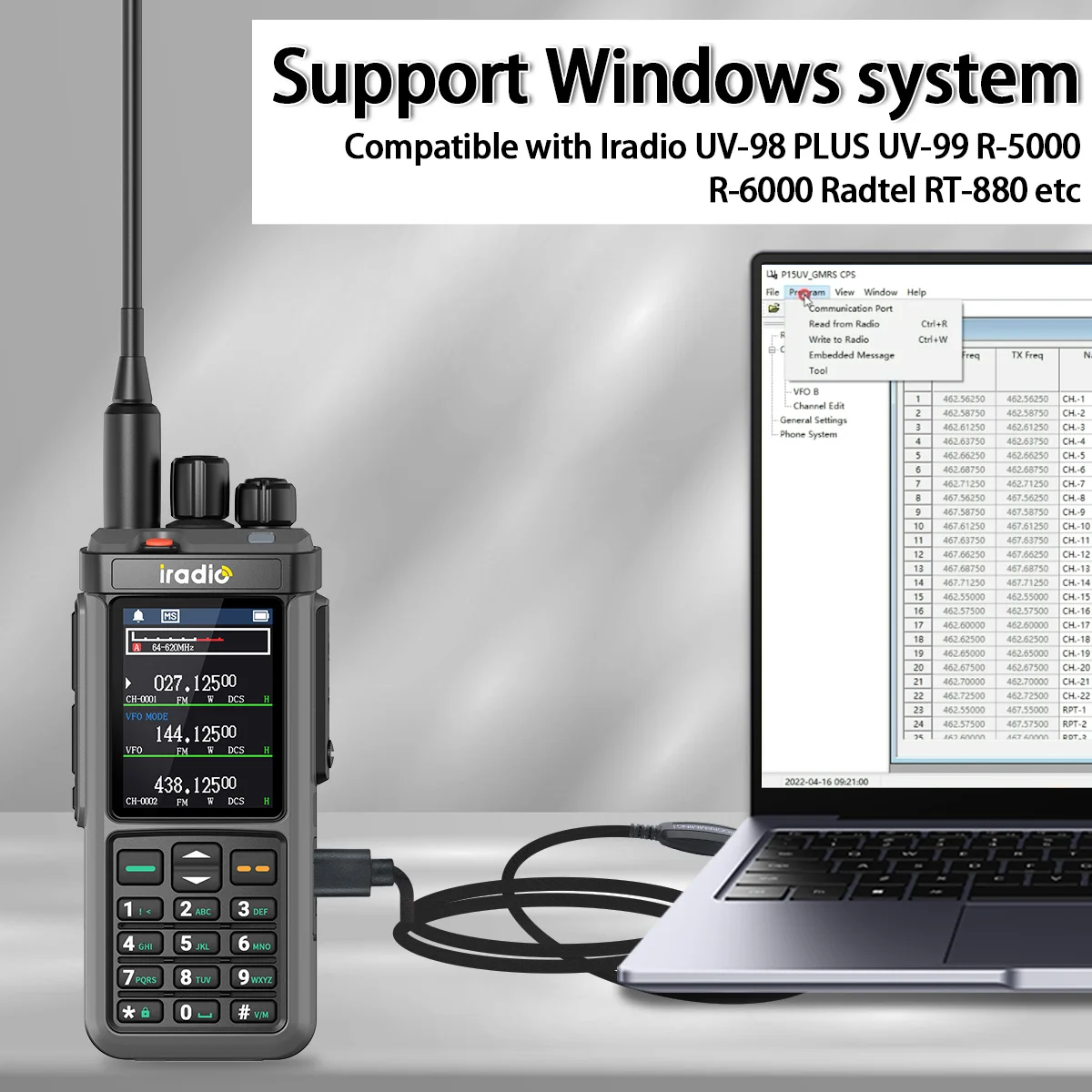 USB Programming Cable Type-C Support Windows System For Iradio UV-98 PLUS UV-99 R-5000 R-6000 Radtel RT-880 Walkie Talkie