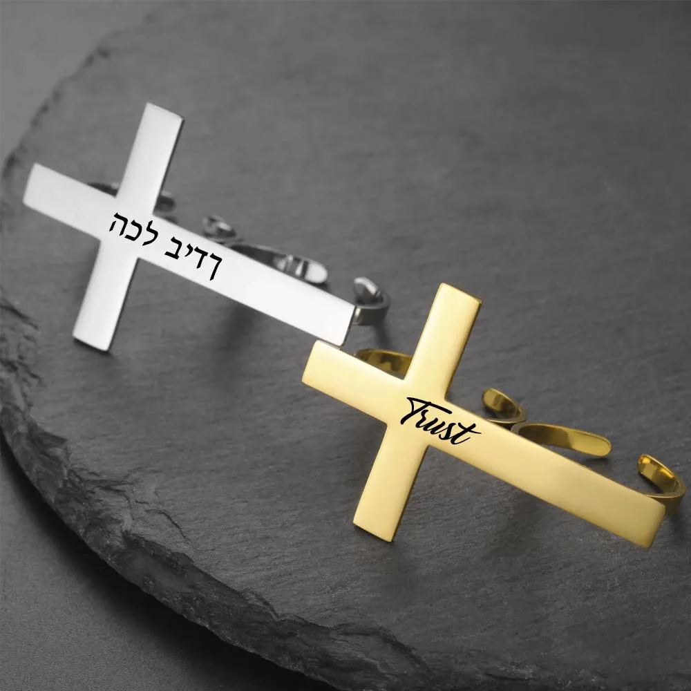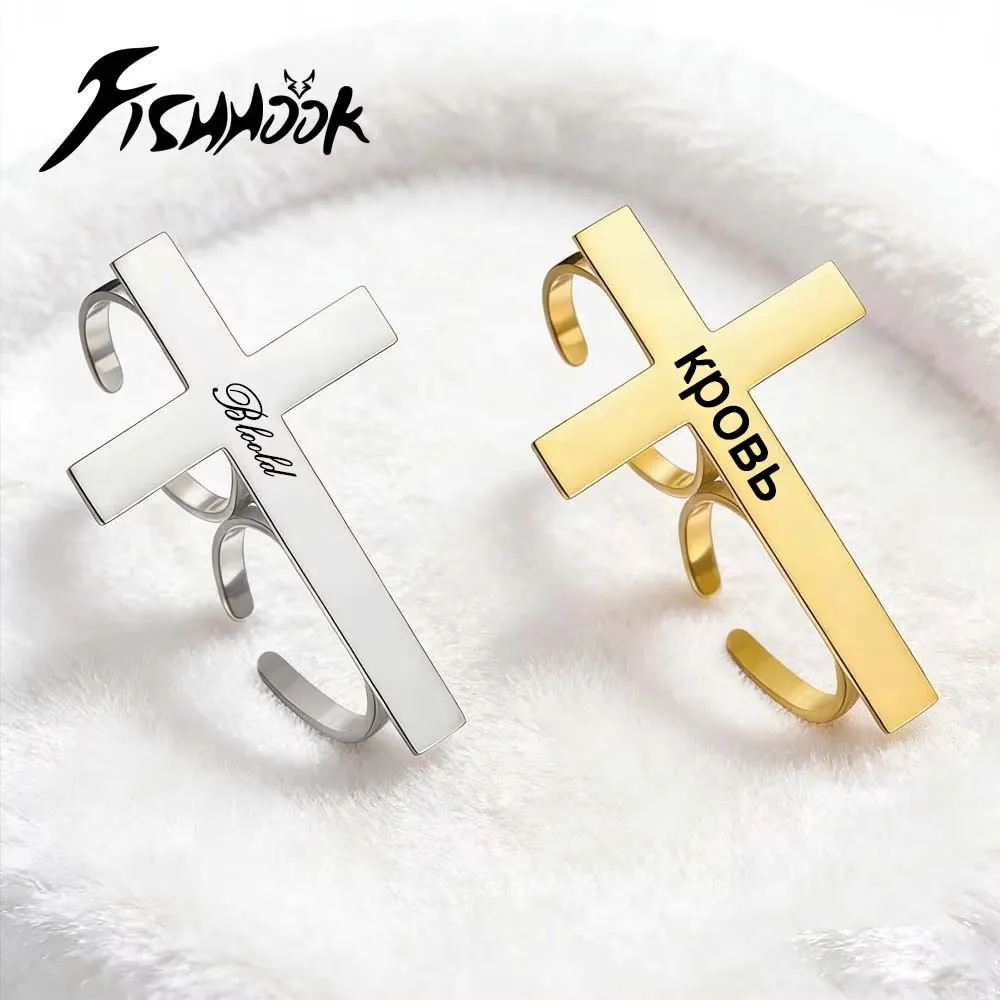 Cross Personalized Name Finger Ring Custom Gift For Woman Men Gold Color Stainless Steel Jesus Christian Amulet Talisman Jewelry