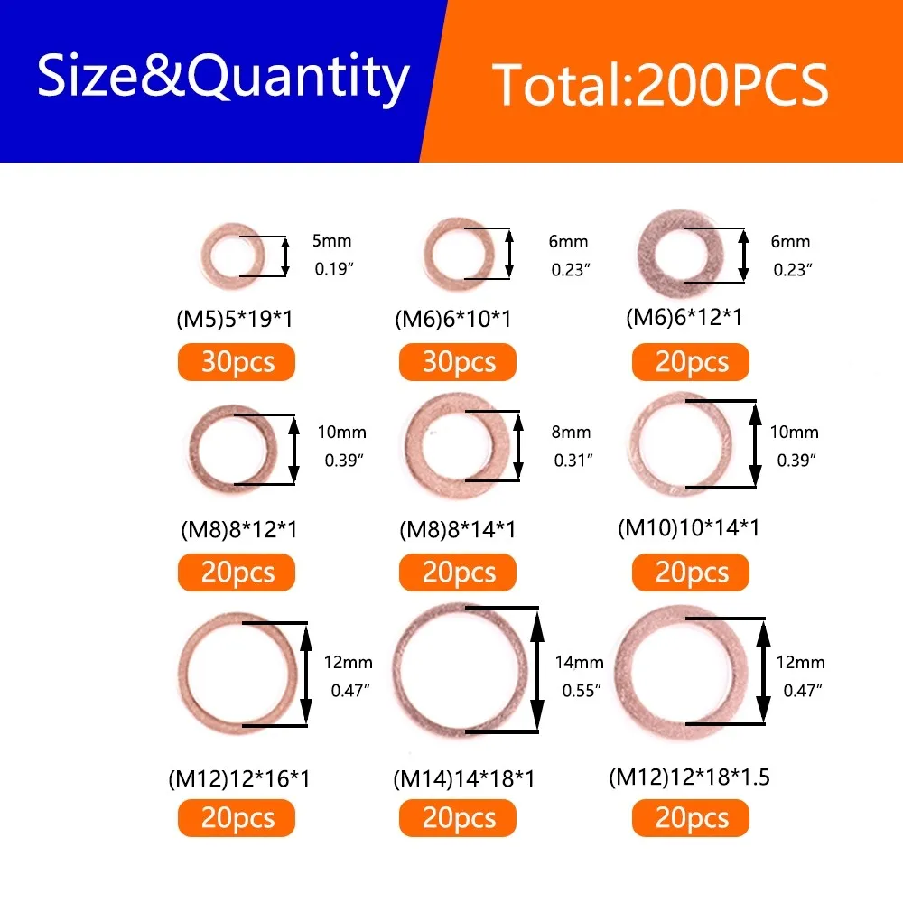 ALI shop - search results ... ... 200 pieces of purple copper gaskets M5-M14, oil seal gasket combination box set, O-ring sealing gasket ::: 2021 ::: :::