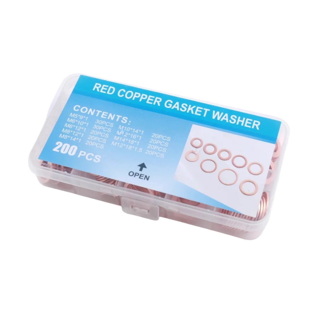 200 pieces of purple copper gaskets M5-M14, oil seal gasket combination box set, O-ring sealing gasket