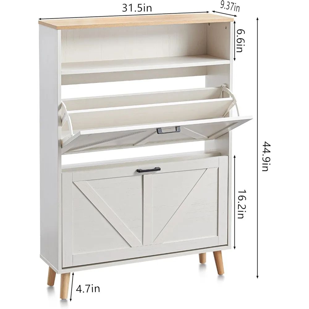 Freestanding Farmhouse Style Shoe Storage Cabinet with Flip Drawers and Door
