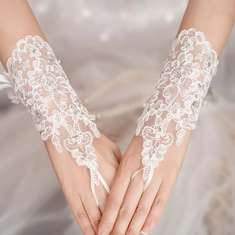 Bridal Gloves Long Lace Flower Accessories Wedding Hook Fingers Look Thin and Beautiful Gloves