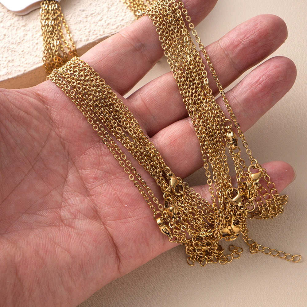 10pcs 45+5cm Gold Stainless Steel Link Cable Chain Necklace with Lobster Clasps for Men & Women Fashion Jewelry Gifts Making