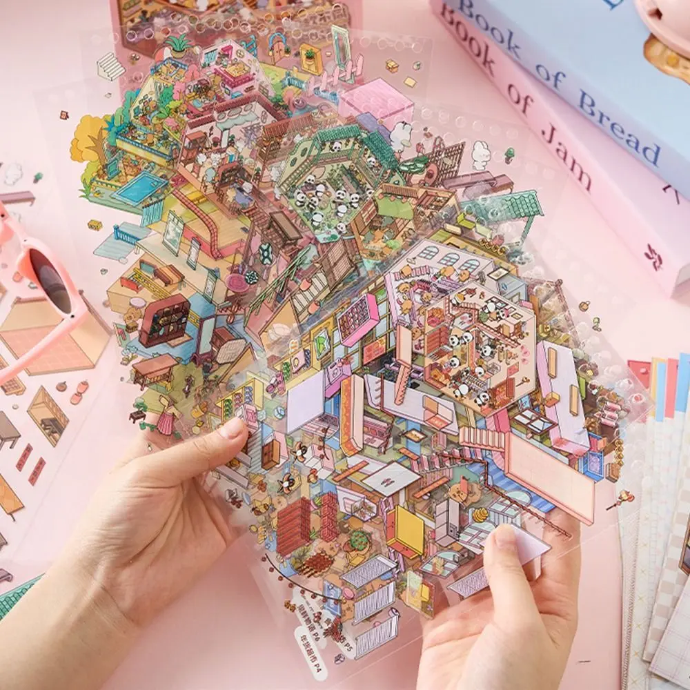 3D Cabin Scene Stickers Book Visual Stacking Cartoon Scene Sticker Collection DIY Cabin Scene Toy Game Stickers