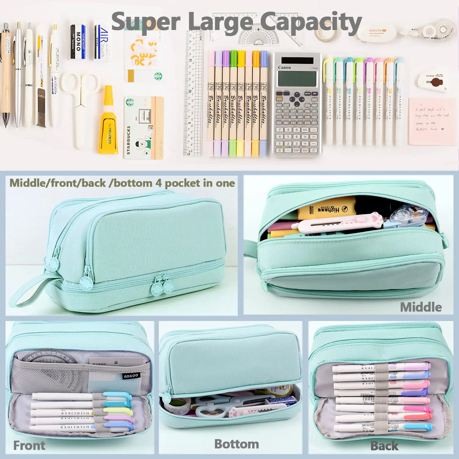 Large-Capacity Portable Pencil Case Minimalist Multi-Compartment Pencil Case Stationery Organizer Desktop Storage Pouch