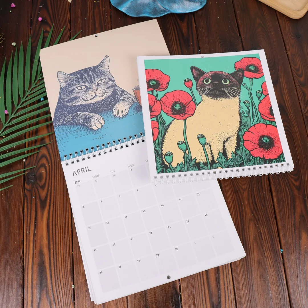 Creative Family Planner 2025 Funny Cat Art Calendar Hangable Wall Handmade 2026 12-Month Calendar Applicable To Office Study