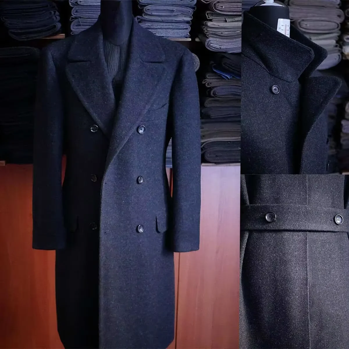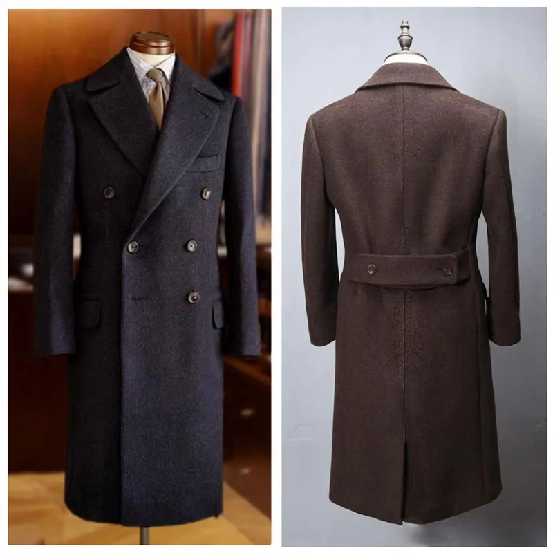 Vintage Men's Long Overcoat Double Breasted Wool Blend Overcoat plus Size Warm Winter Business Jacket Customizable Blazer