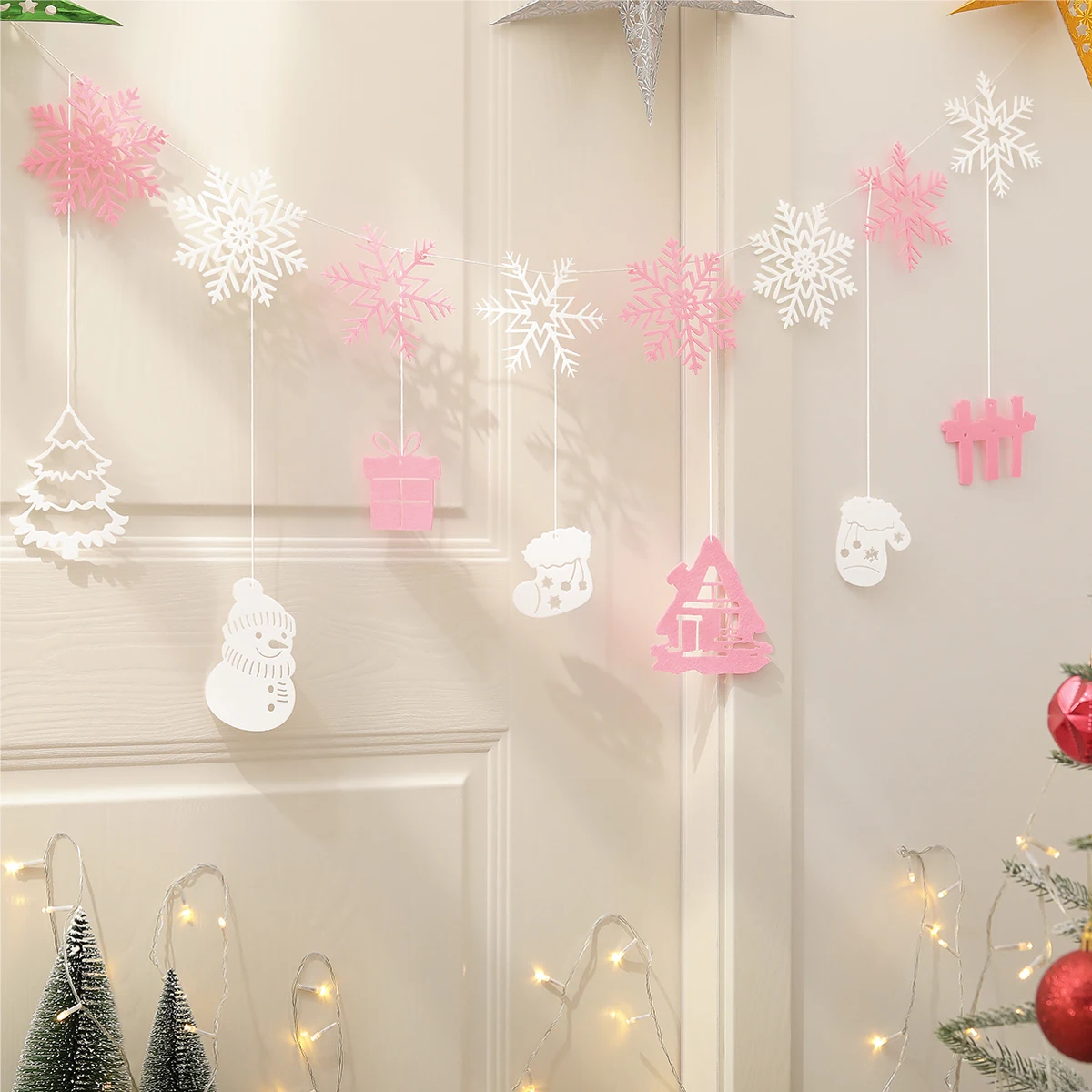 Christmas Party Background Banner Cartoon Cute Snowflake Decoration Set up Garland 1 Set 1 Piece