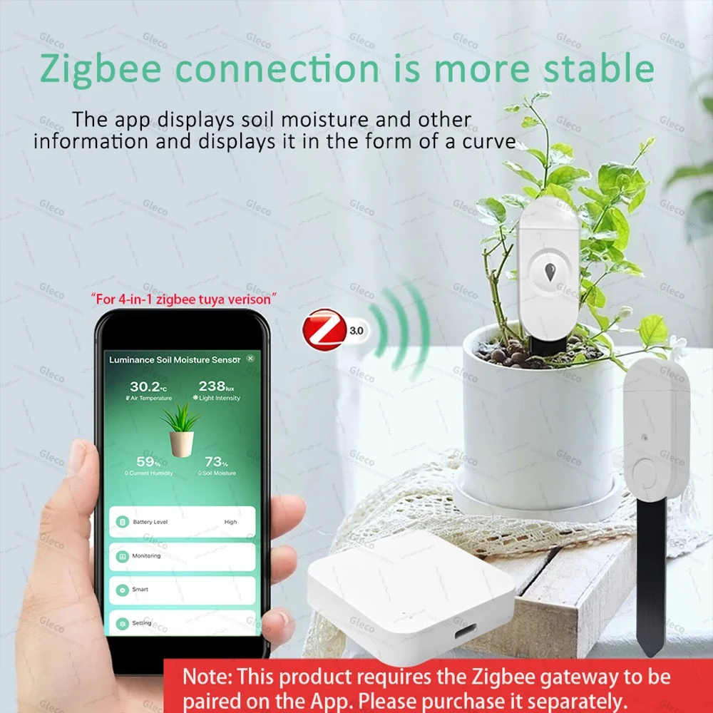 3-in-1/4-in-1 Zigbee Soil Moisture Sensor Humidity Meter Temperature Tester Light Detector Work With Tuya Smart Life 2MQTT HA