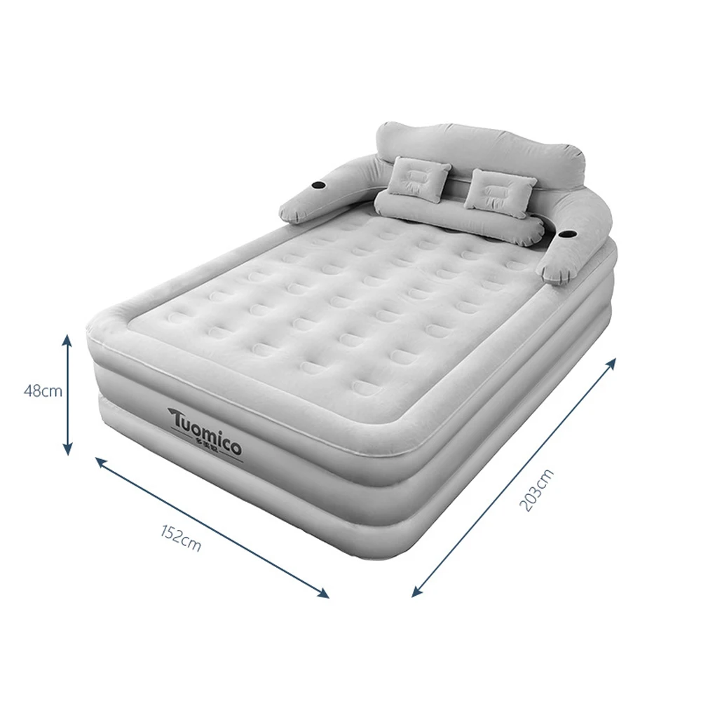 Camping Air bed with Backrest 2 Persons Inflatable Mattress Camping Folding Home Indoor Outdoor Air Cushion 48cm High Bed