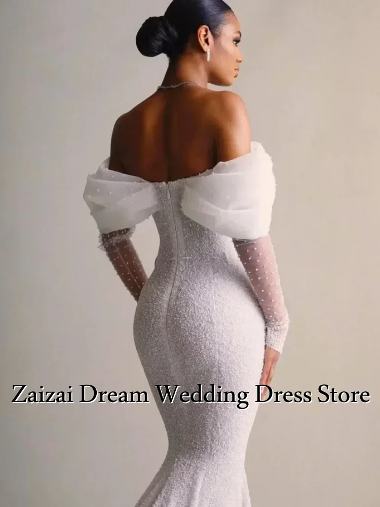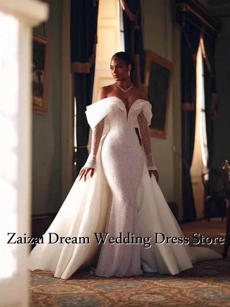 Customized Luxury Detachable 2 In 1Mermaid Wedding Dress Lace Sequins with Train V Neck Full Sleeve Bride Gown Vestido De Novia