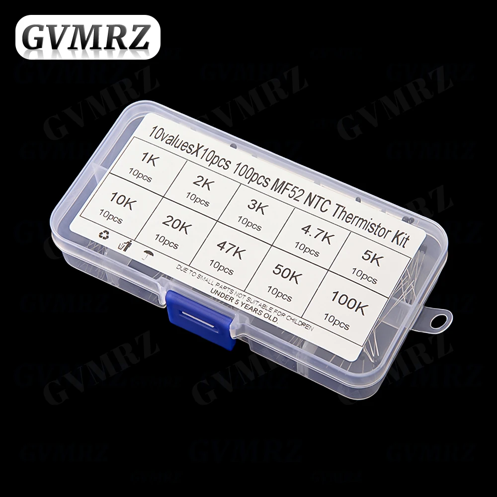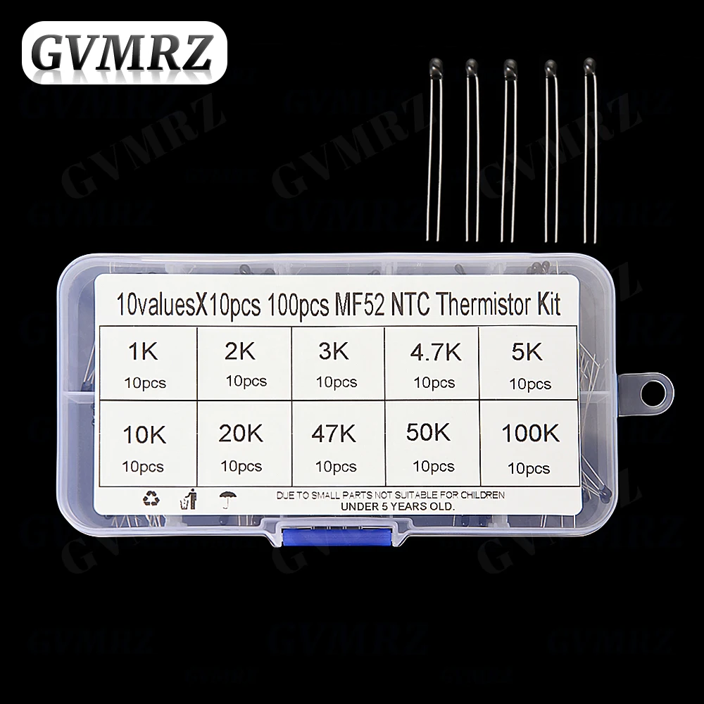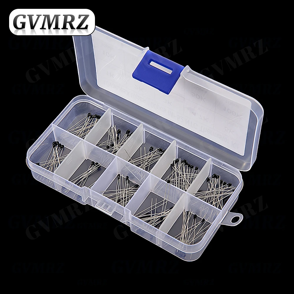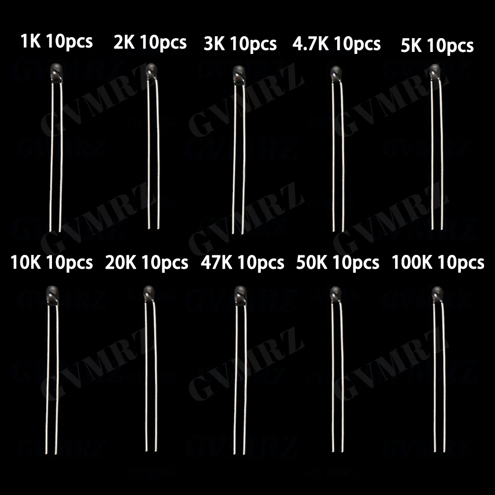 100PCS 10Values*10PCS NTC Thermistor Thermal Resistor kit MF52 NTC-MF52AT 1K 2K 3K 4.7K 5K 10K 20K 47K 50K 100K 5% 3950B