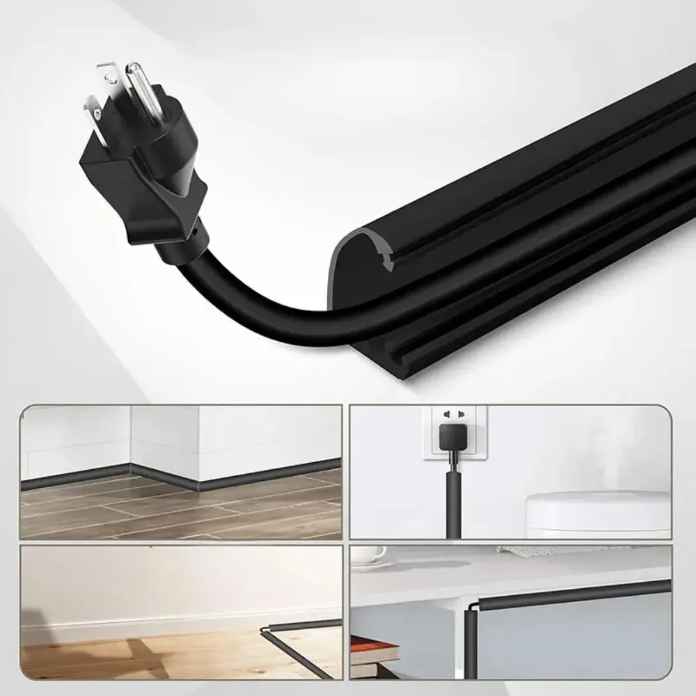 2M/3M Arc Anti-extrusion Floor Cord Cover Self-Adhesive Power Extension Wiring Duct Cable Protector Home Wire Organizer