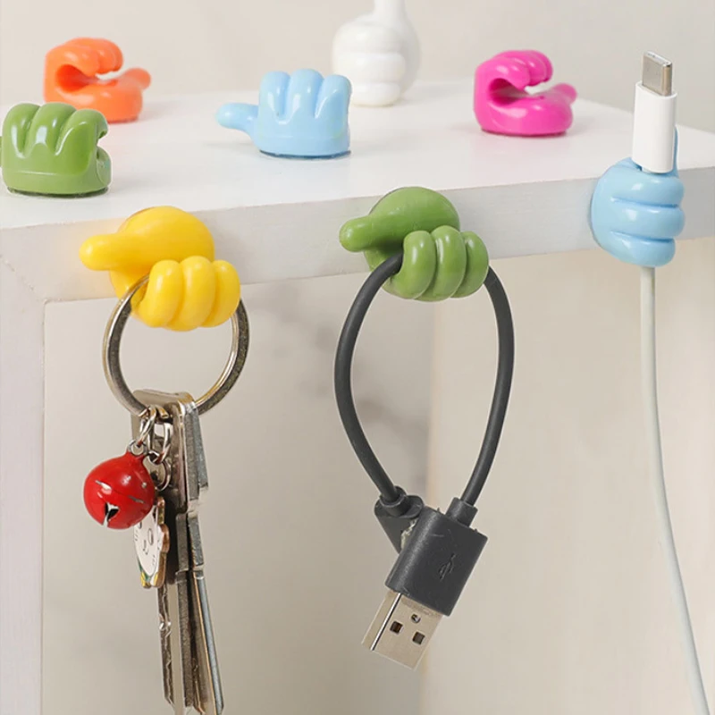 10Pcs Thumb-Shaped Cable Organizer Plastic Storage Clips No-Drill Adhesive Hooks Table Office Charging Cables Cord Holder