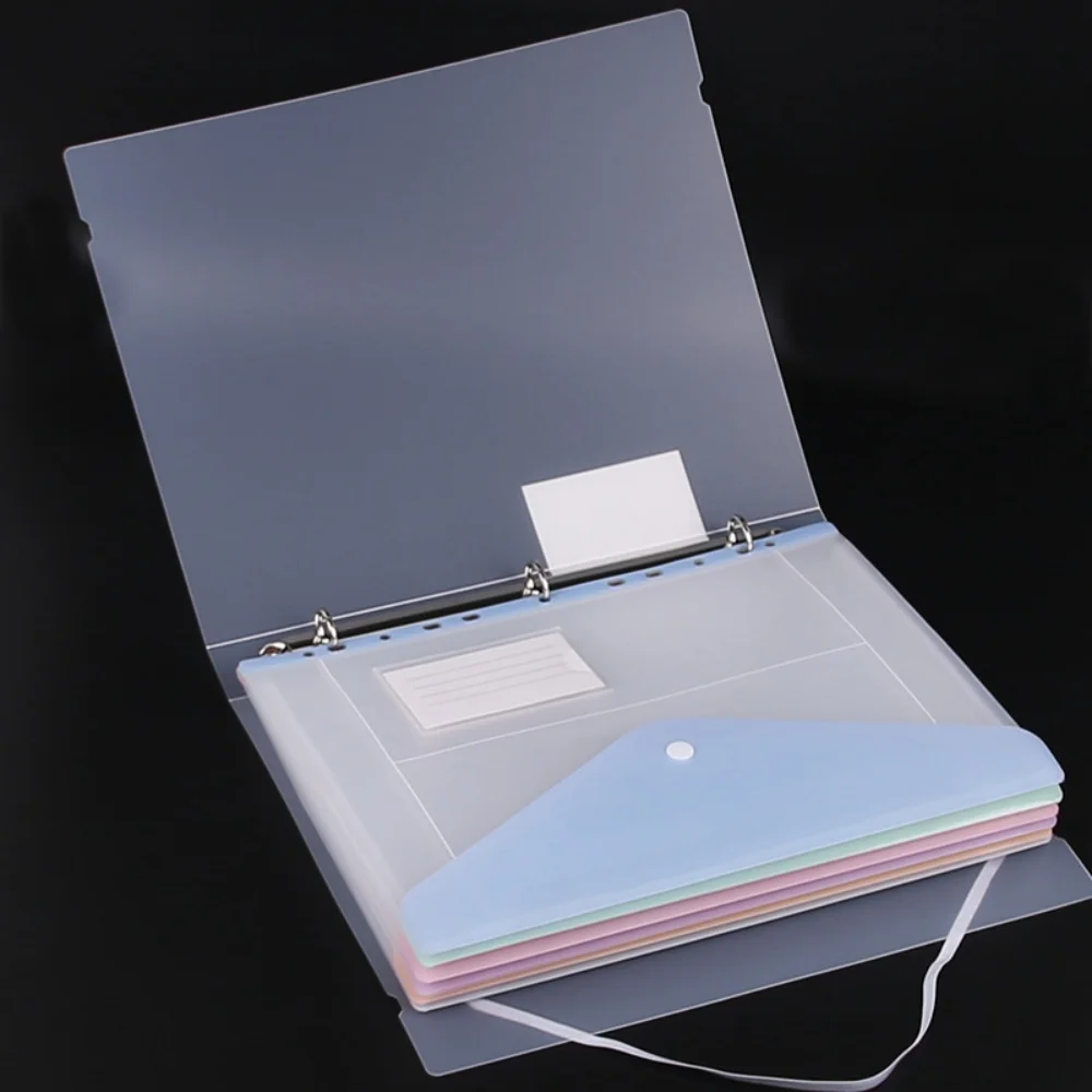 Plastic 11-hole Loose-leaf File Bag Transparent 3-hole Folder+6pcs Binder Pockets Document Pouch for Office and School Supply