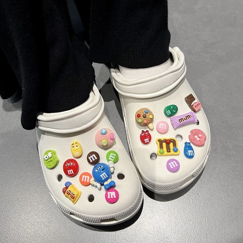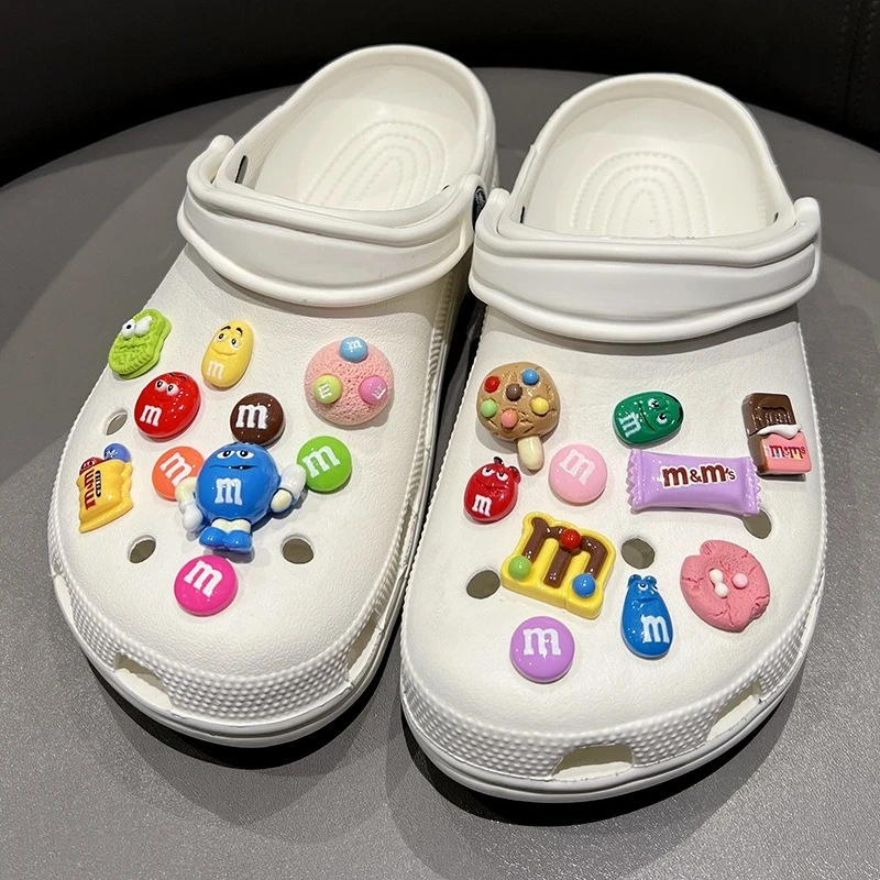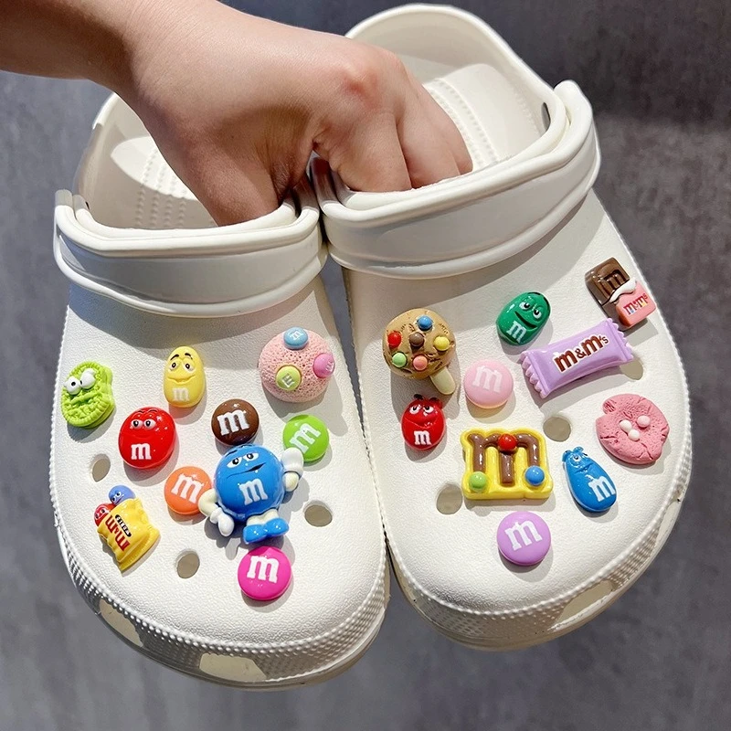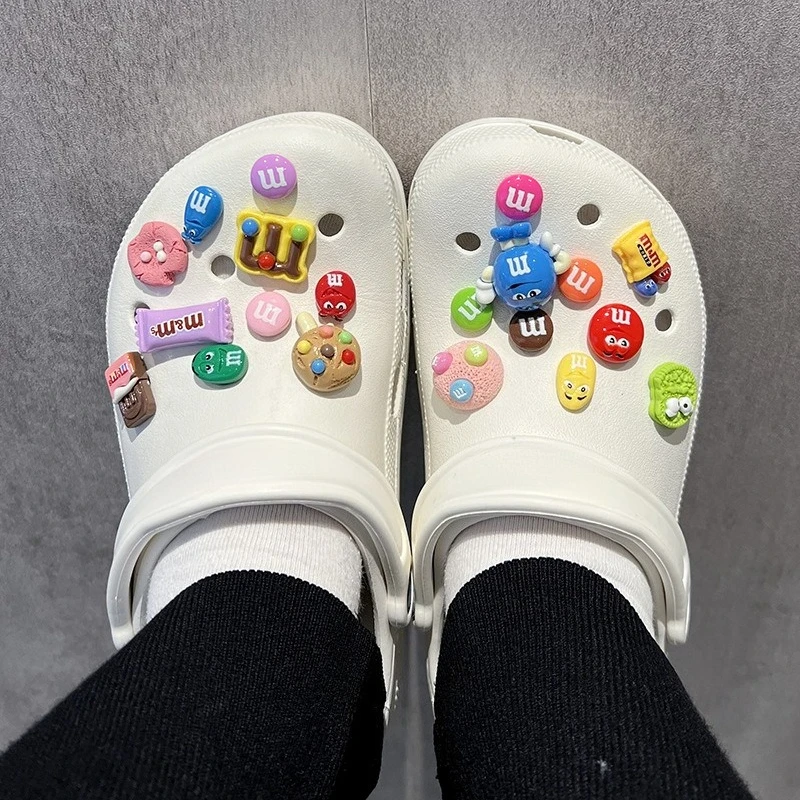 Vibrant Letter M Bean DIY Hole Shoes Charms for Cute Cartoon Handmade Charms Designer Quality Garden Shoe Decoration Girl Gift