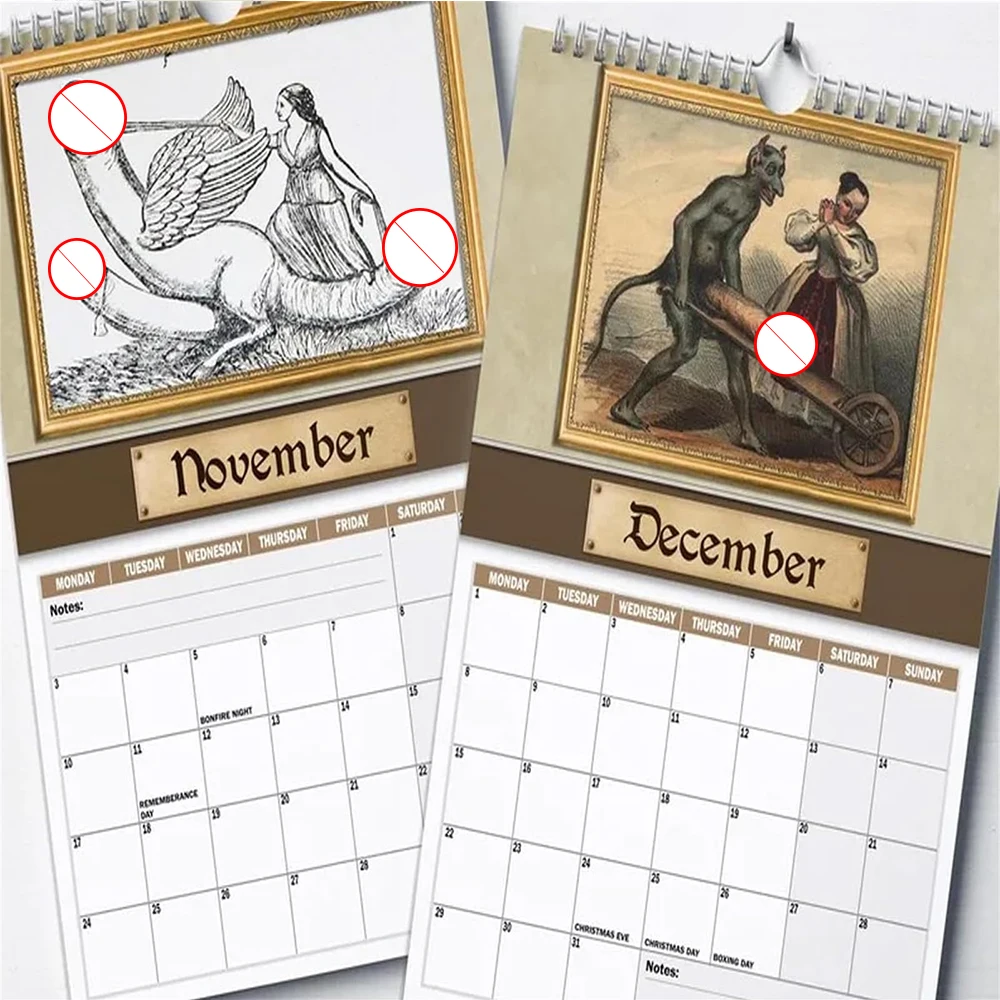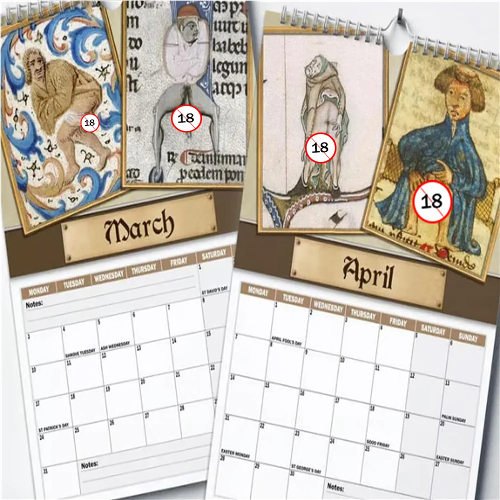 1/2pcs 2026 Medieval Humor Wall Calendar, Bawdy Historical Art for History Buffs, Perfect Gag Gift for Prankster Friends