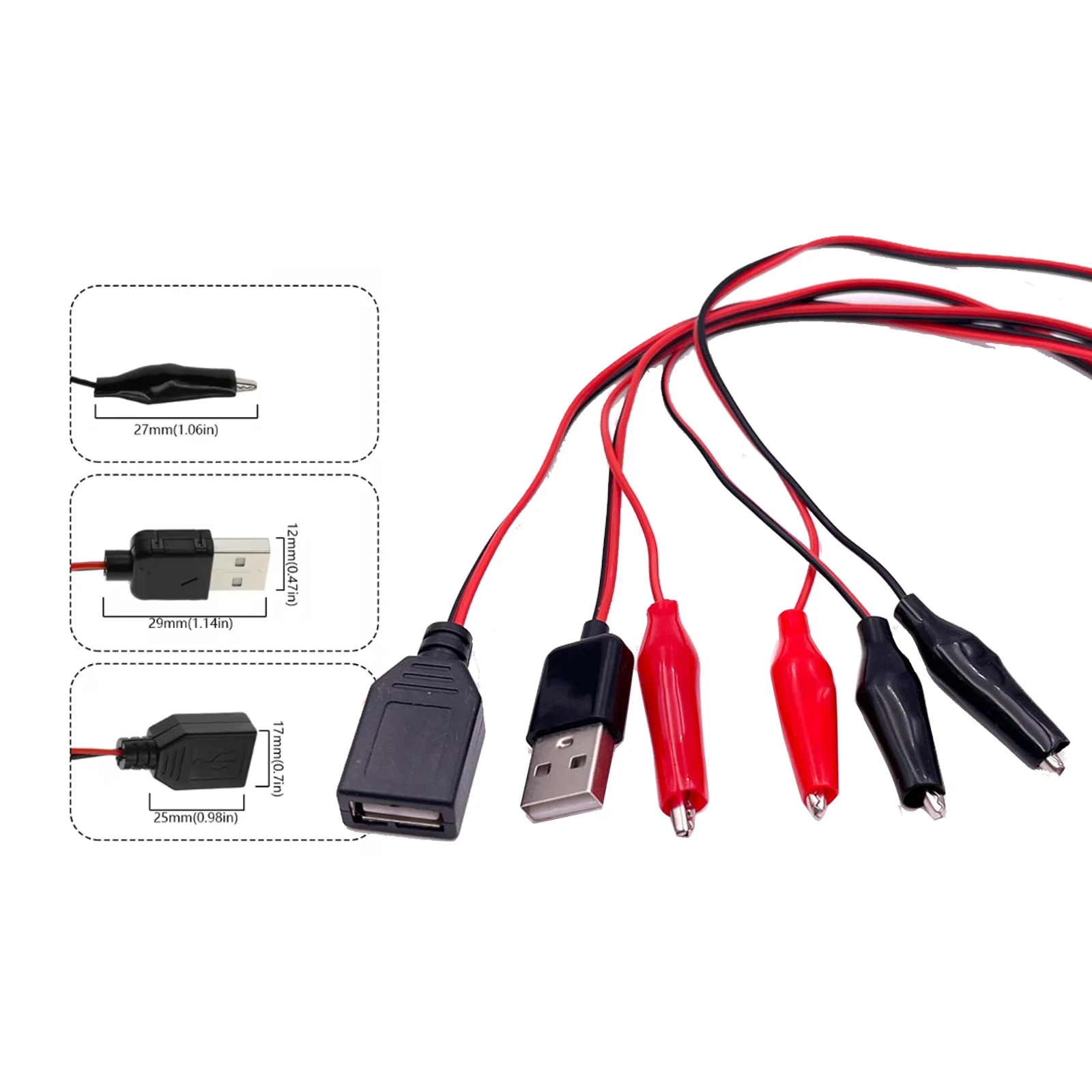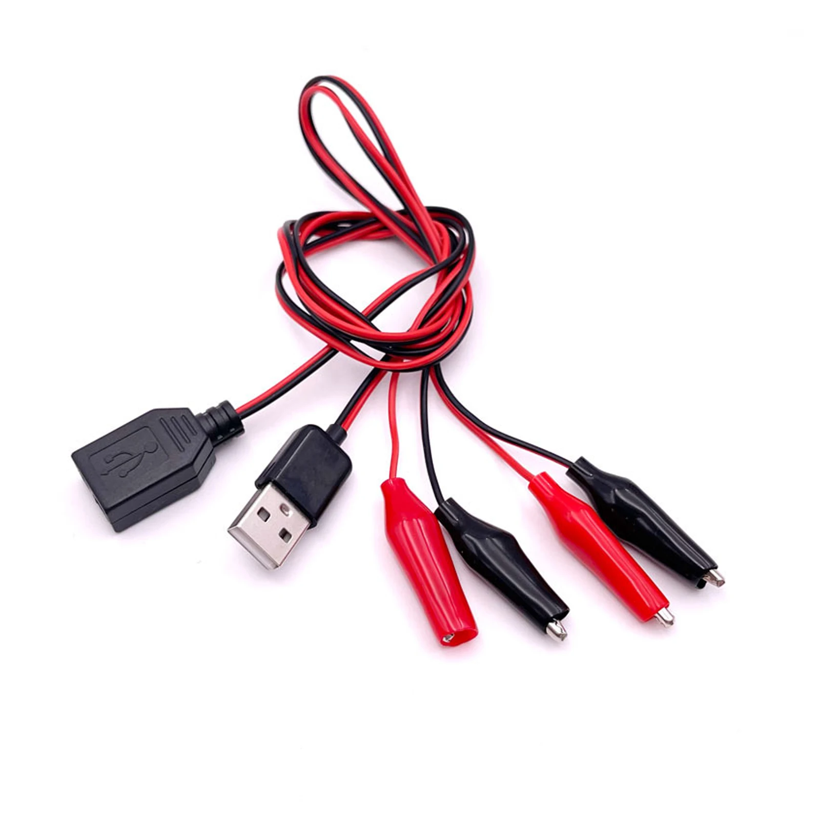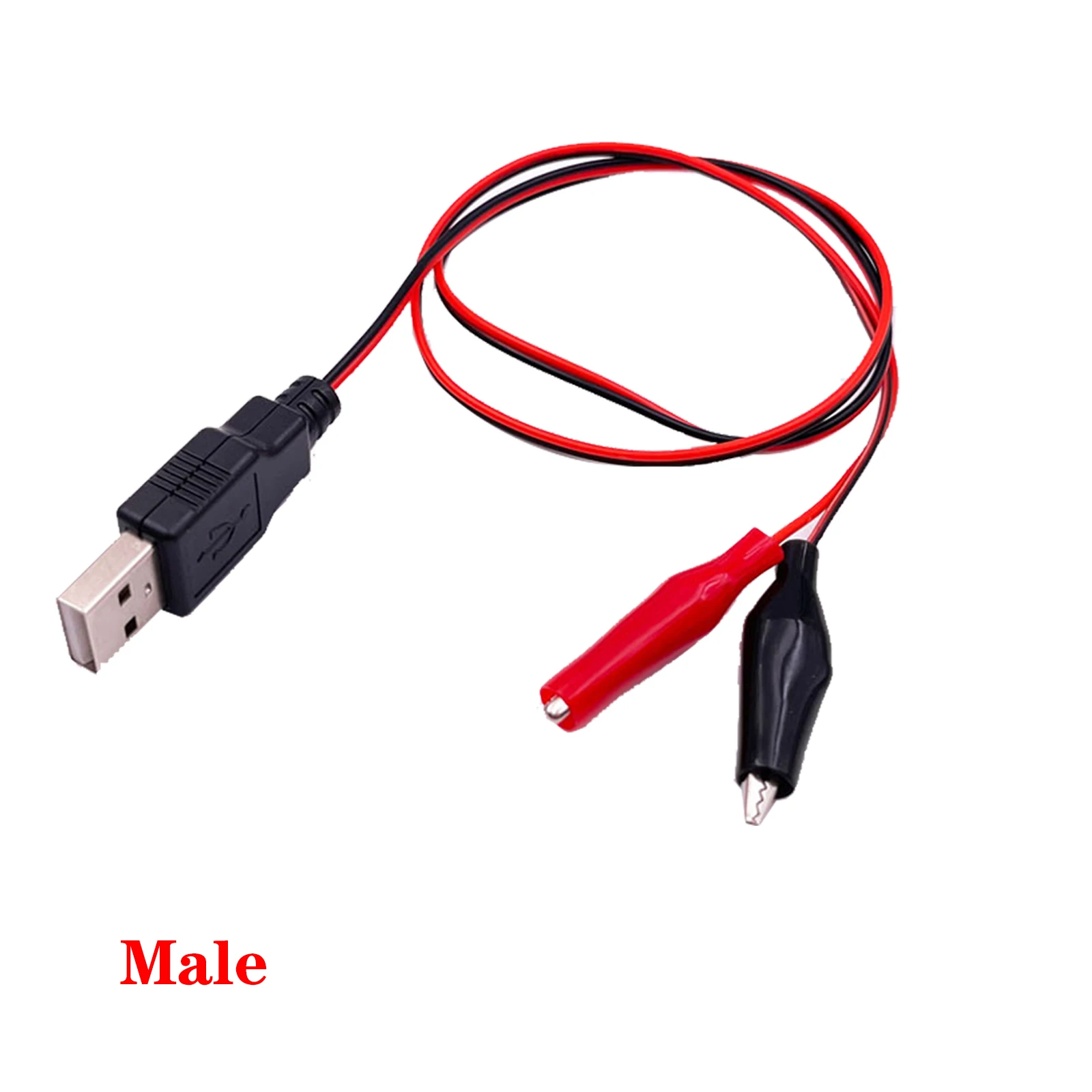 2pcs USB To Alligator Test Clips Clamp, 50cm Red And Black Wire Male Female Connector Power Adapter Supply