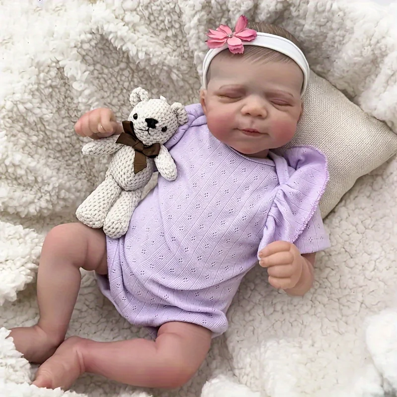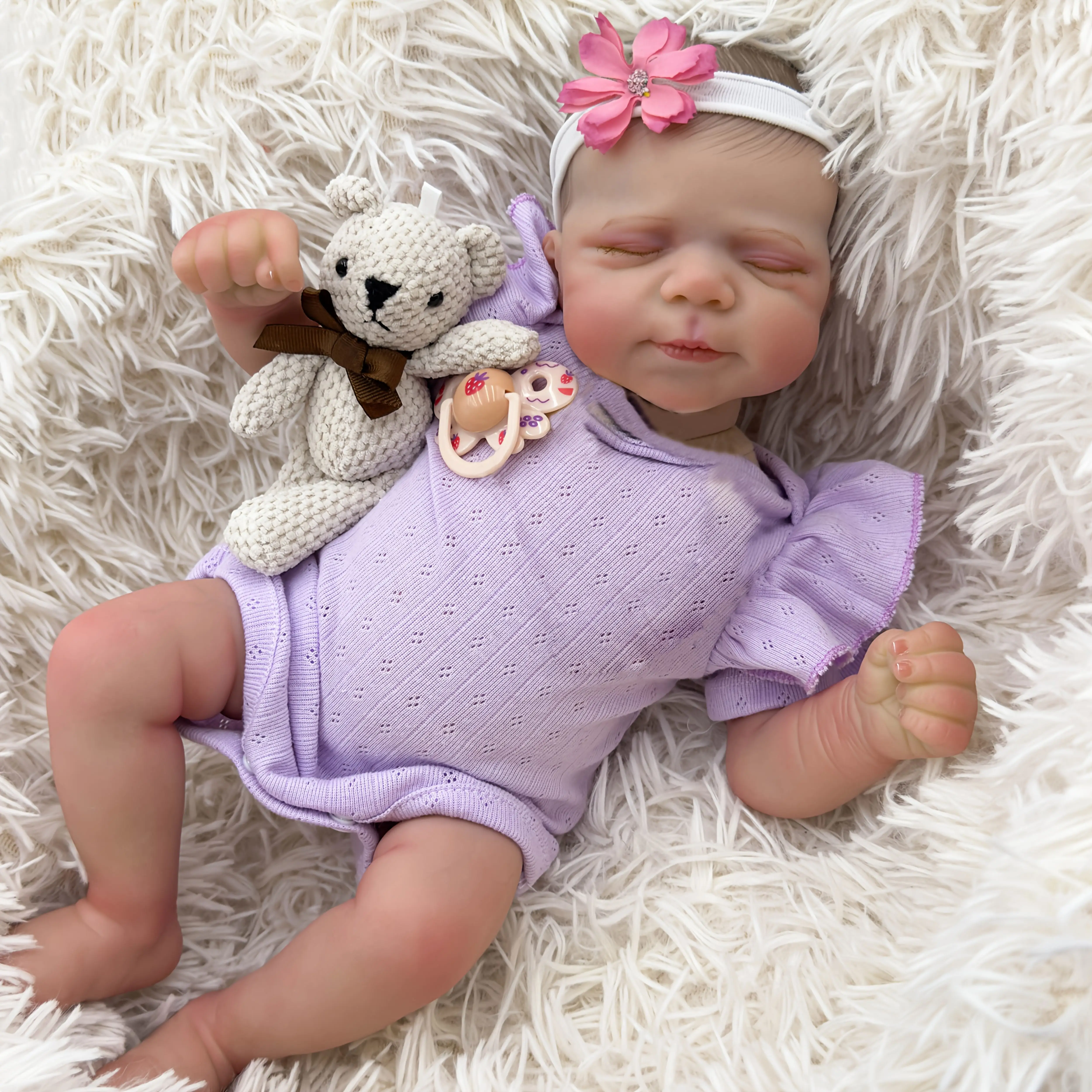 19 inch Reborn Baby doll - realistic baby girl with soft vinyl skin, purple costume and plush toys