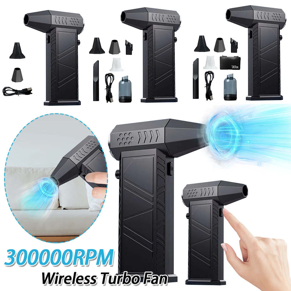 300000RPM Electric Air Duster Rechargeable Powerful Air Blower Multifunctional Portable Turbo Jet Fan Strong Power for Home Car