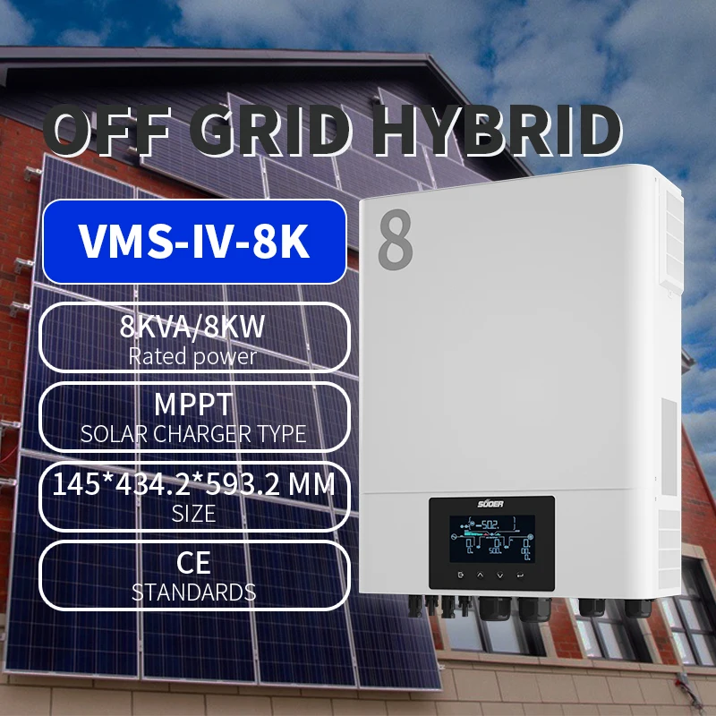 Factory Direct 8KW Hybrid Solar Inverter 48Vdc 120A MPPT 120V~450V PV Solar Inverter Battery 60Hz AC Single Inverter